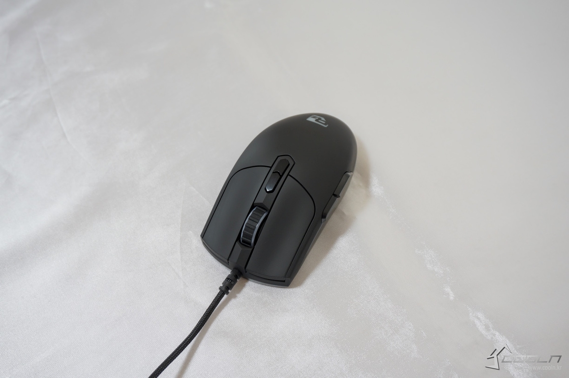 무광 UV 코팅과 기존 자사 마우스 디자인을 크게 벗어나지 않는 좌,우 대칭형 디자인이 특징.