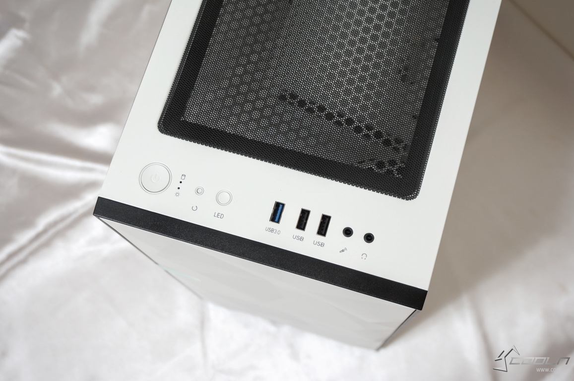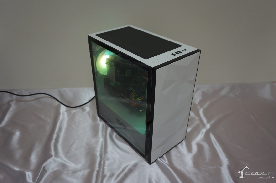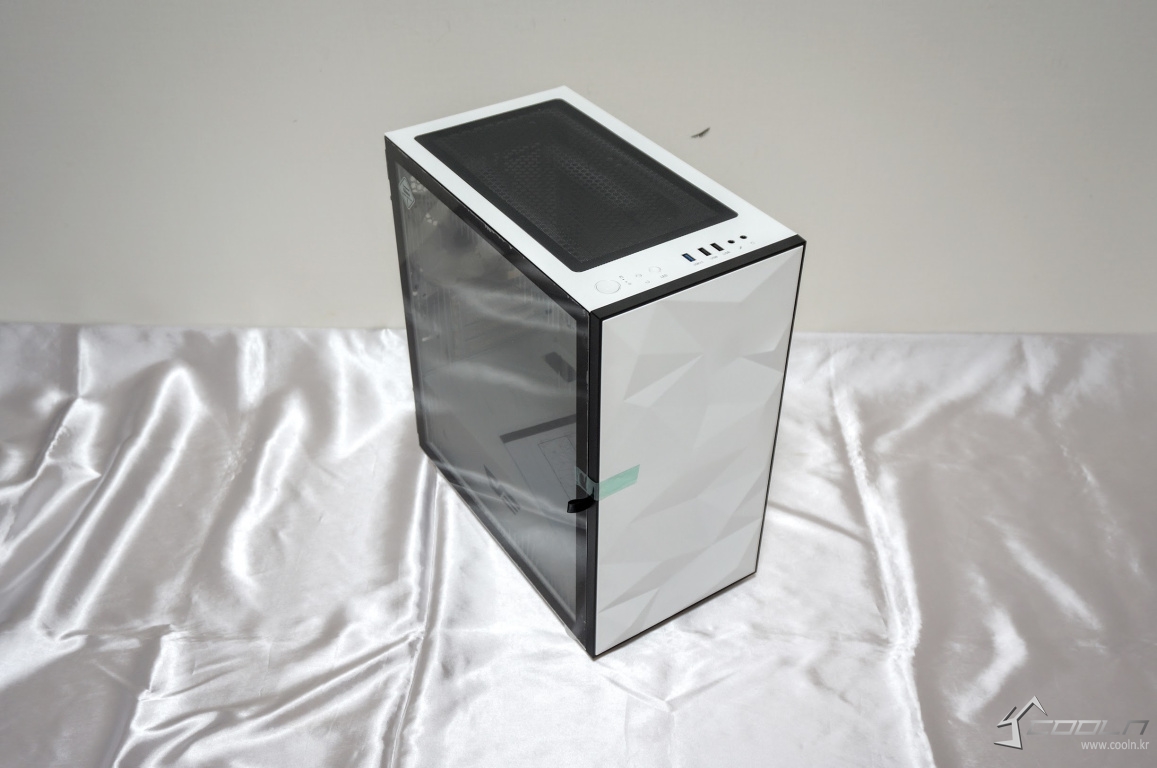 전면 로우폴리 패턴에 너무 집중되어 있지 않나 싶을 정도로 전면부만 보이는 디자인. 그 만큼 이 제품만의 특징을 모두 이 하나가 가지고 있다 해도 될 정도. 도어형 방식의 강화유리 패널은 디자인 요소로서도 괜찮지만 기능적으로도 상당히 편리한 편이라 할 수 있습니다.
