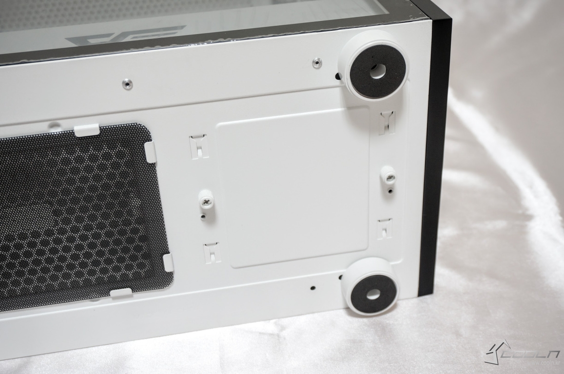 미끄럼 방지패드가 부착되어 있으며 파워 장착부에는 먼지필터가 장착되어 있습니다. 3.5" 베이 또한 손나사로 탈부착이 가능합니다.