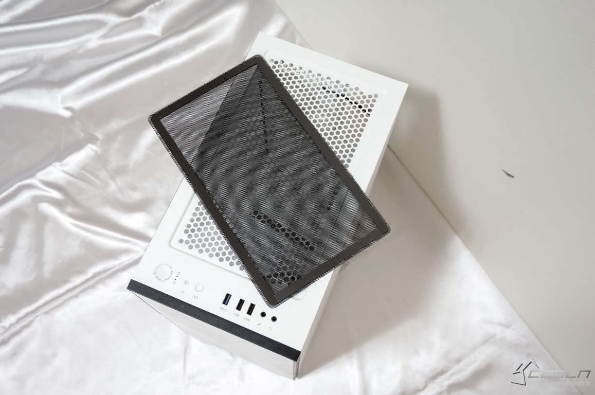 쿨링팬 추가 장착을 할 수 있는 공간을 제공하며 먼지필터는 자석식으로 되어 있습니다.