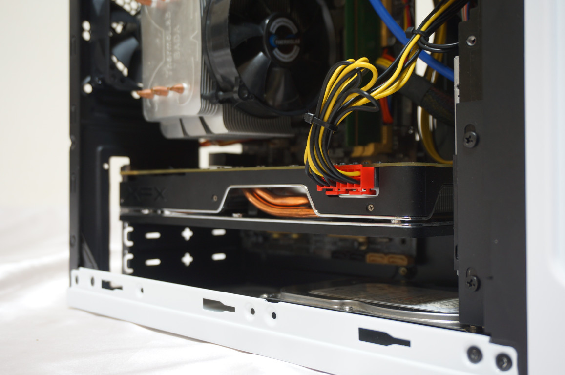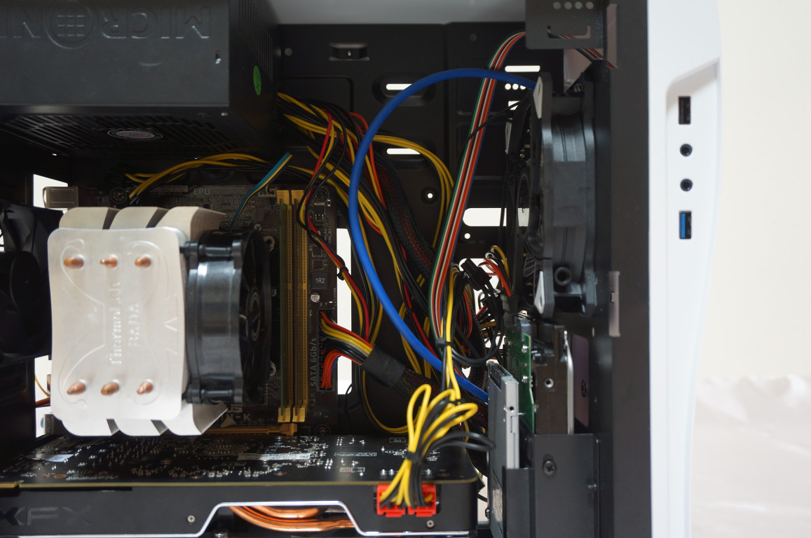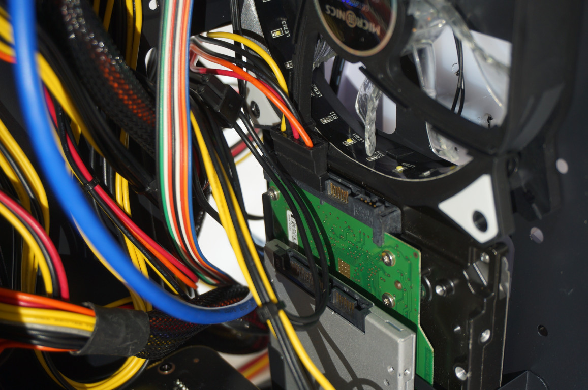 HDD 장착 위치에 따라 달라지겠지만 위 이미지 처럼 SATA 커넥터와 팬이 매우 가까운 상태로 있게 됩니다.
