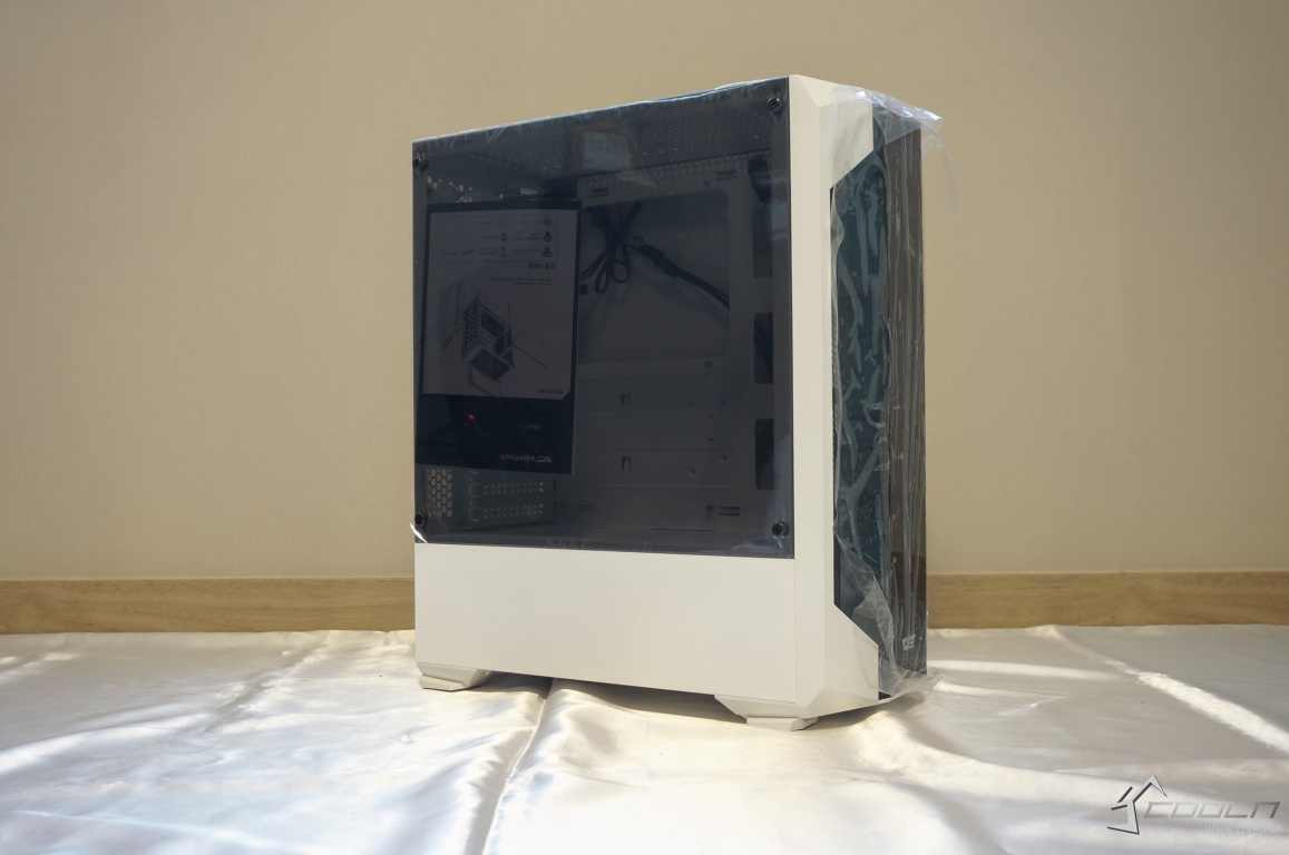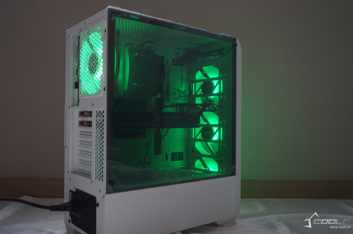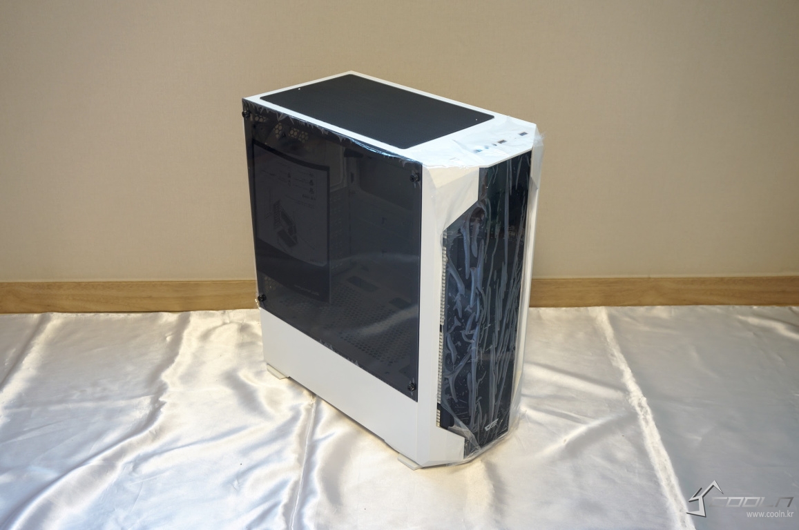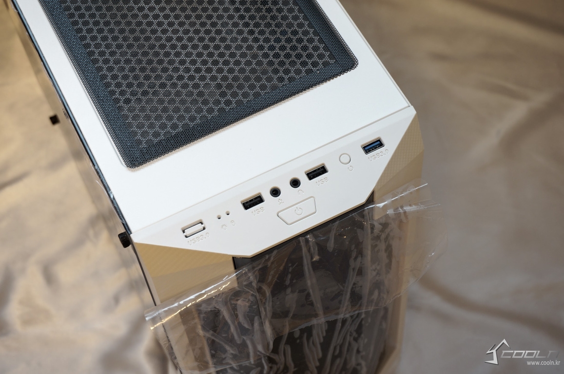 화이트 색상 외형과 전면 돌출된 아크릴과 상단 먼지 필터 그리고 측면 아크릴이 대배되는 색상으로 보여 디자인적으로 대조되는 듯한 느낌을 주어 결코 심심하지 않는 외형.