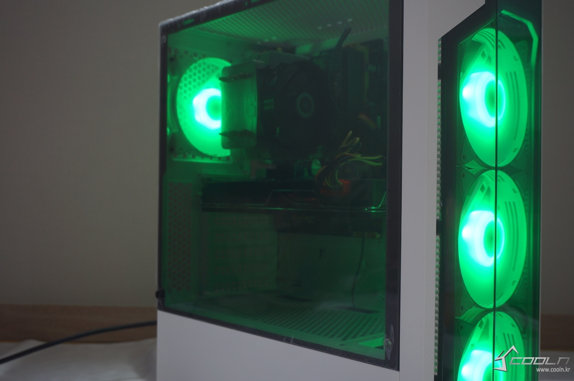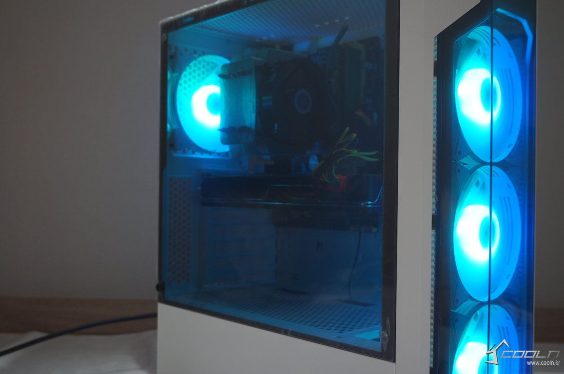 측면 아크릴은 내부가 어둡다 생각되지 않는 정도였으며 팬 밝기 또한 심하게 밝은 편은 아니였습니다.