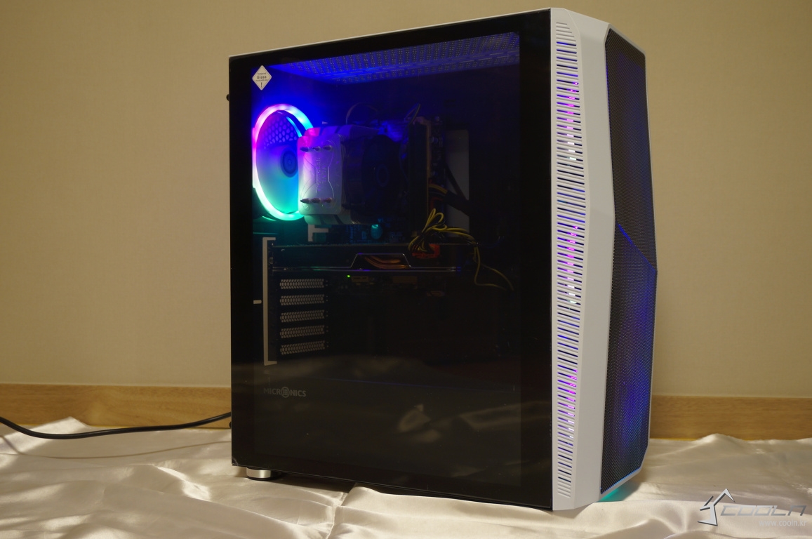 케이스는 커지는 데 팬사이즈는 120mm 그대로인 제품이 많습니다. 물론 가격대가 높아진다면 얼마든지 찾을 수 있습니다만 보급형 케이스에서 이러한 제품을 찾기는 어렵습니다. 제가 지금까지 사용해 본 제품들은 대부분 120mm 팬이거나 그보다 작은 제품들이였습니다. 물론 전면부 200mm 팬도 있었으나 가격대가 높아지니 예외로 해야 할 것입니다. 파워로 지금은 케이스로도 유명해지고 있는 마이크로닉스 사의 Z 시리즈의 4번째 제품은 강화유리와 전면부 스컬프처 디자인과 aRGB를 바로 확인할 수 있는 그런 케이스 입니다.