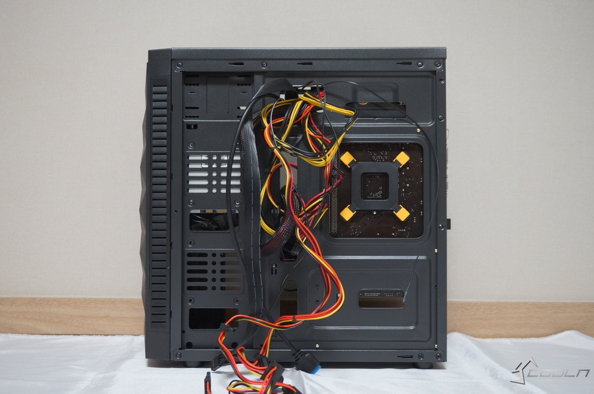상단파워 장착 방식을 사용하고 있으며 우측 선정리 홀을 통해 선정리를 하게 됩니다. 다면 4+4 보조전원 선정리 홀이 없어 횡단하듯이 케이블을 결합해야 합니다.