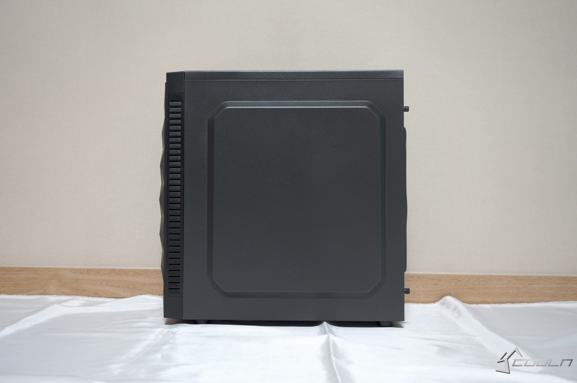 측면에는 풀사이즈 강화유리가 부착되어 있으며 측면 통풍구를 확인할 수 있습니다.