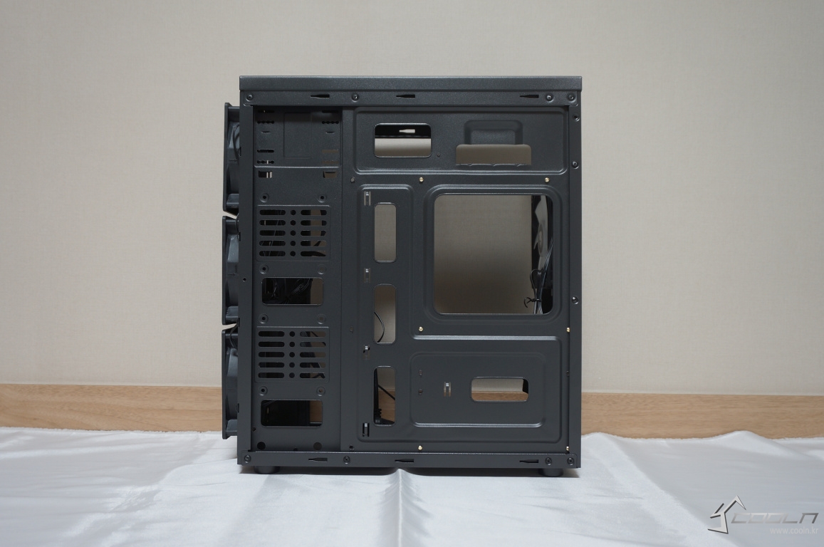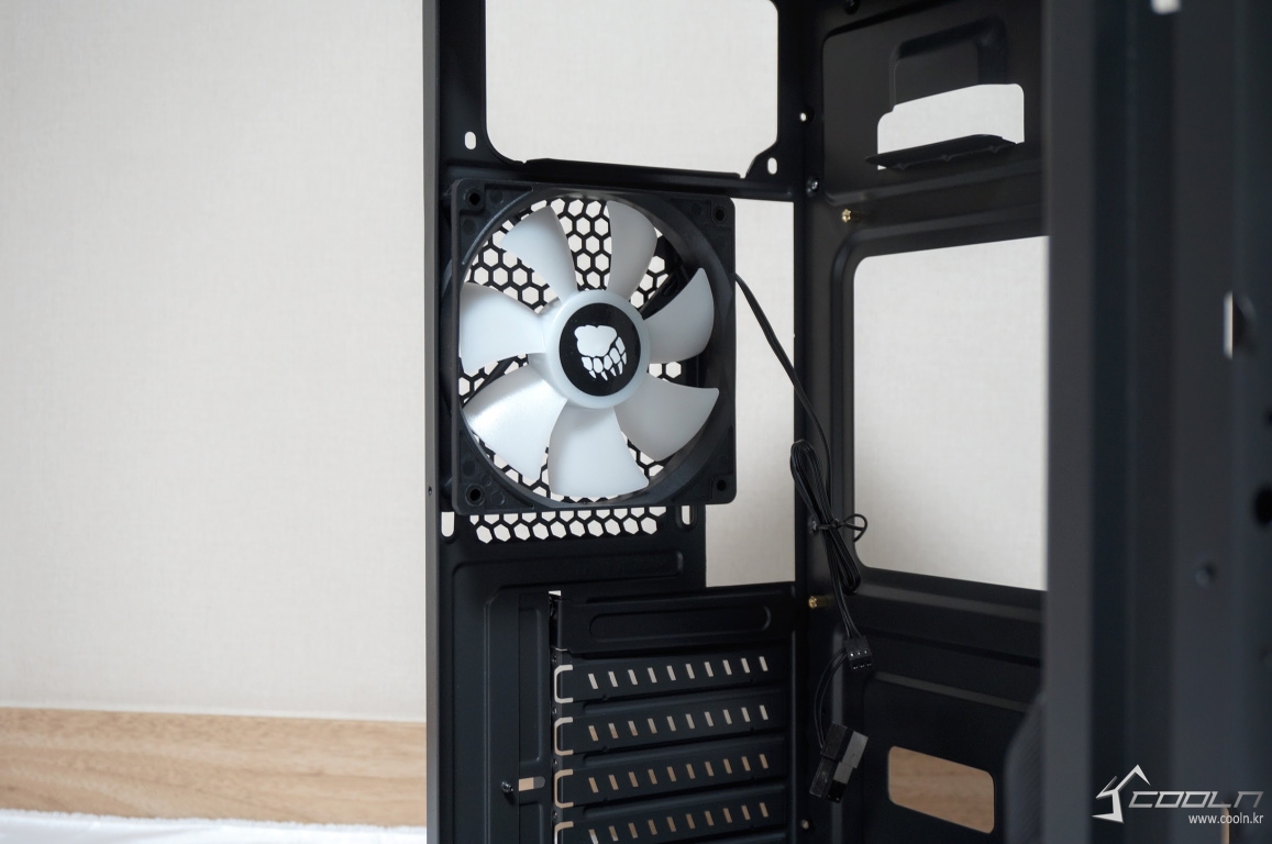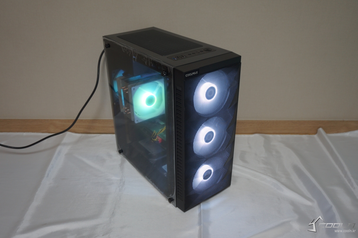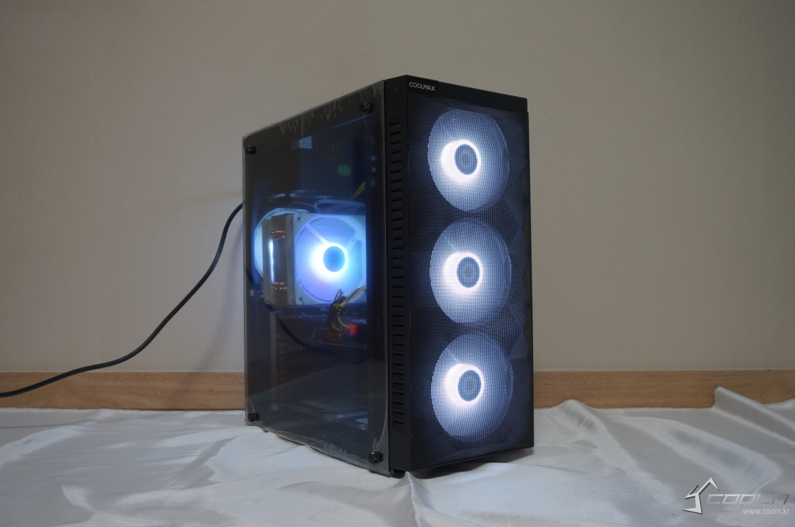 보급형 케이스에서 포기해야 하는 것들은 많습니다. 그러나 케이스의 가장 기본이 되는 쿨링을 포기할 수는 없습니다. COOLMAX S7는 전면,후면 120mm 화이트 LED팬 4개를 기본 제공하고 있으며 전면부 메쉬타공으로 쿨링과 디자인 모두를 가지고 있는 보급형 케이스입니다. 또한 동 가격대 제품들에서 쉽게 볼 수 있었던 풀사이즈 아크릴이 아닌 강화유리가 부착되어 있다는 점에서 주목할 만한 제품이라 생각합니다.