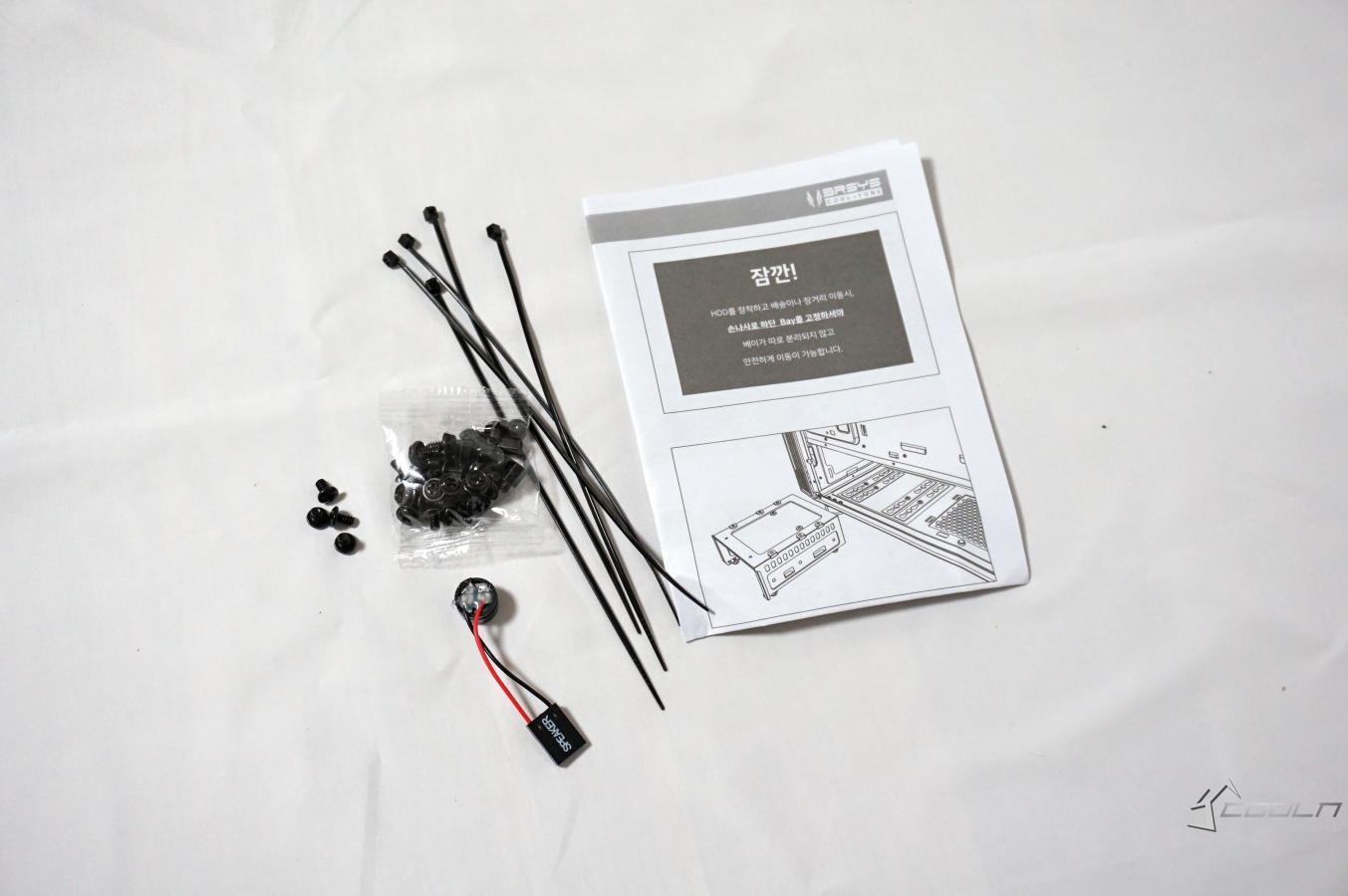 케이블 타이, 비프음 스피커, 조립 나사, 설명서