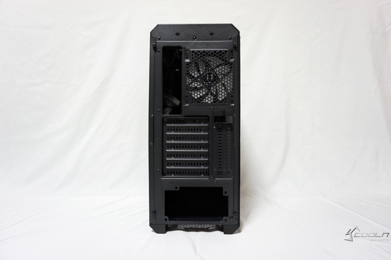 전형적인 파워 서플라이 챔버 분리 구조. 차이점이 있다면 전면부 외에 전면부에도 자석식 먼지 필터가 제공된다는 점과 VGA 보조 전원 전용 홀을 제공합니다.