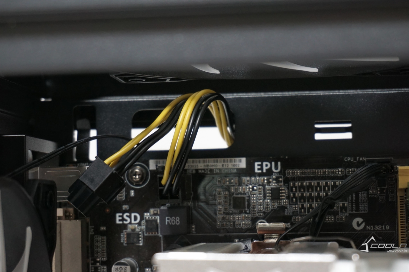 4+4핀 보조전원 선 정리 홀은 쿨링팬과의 간섭은 발생하지 않았습니다.