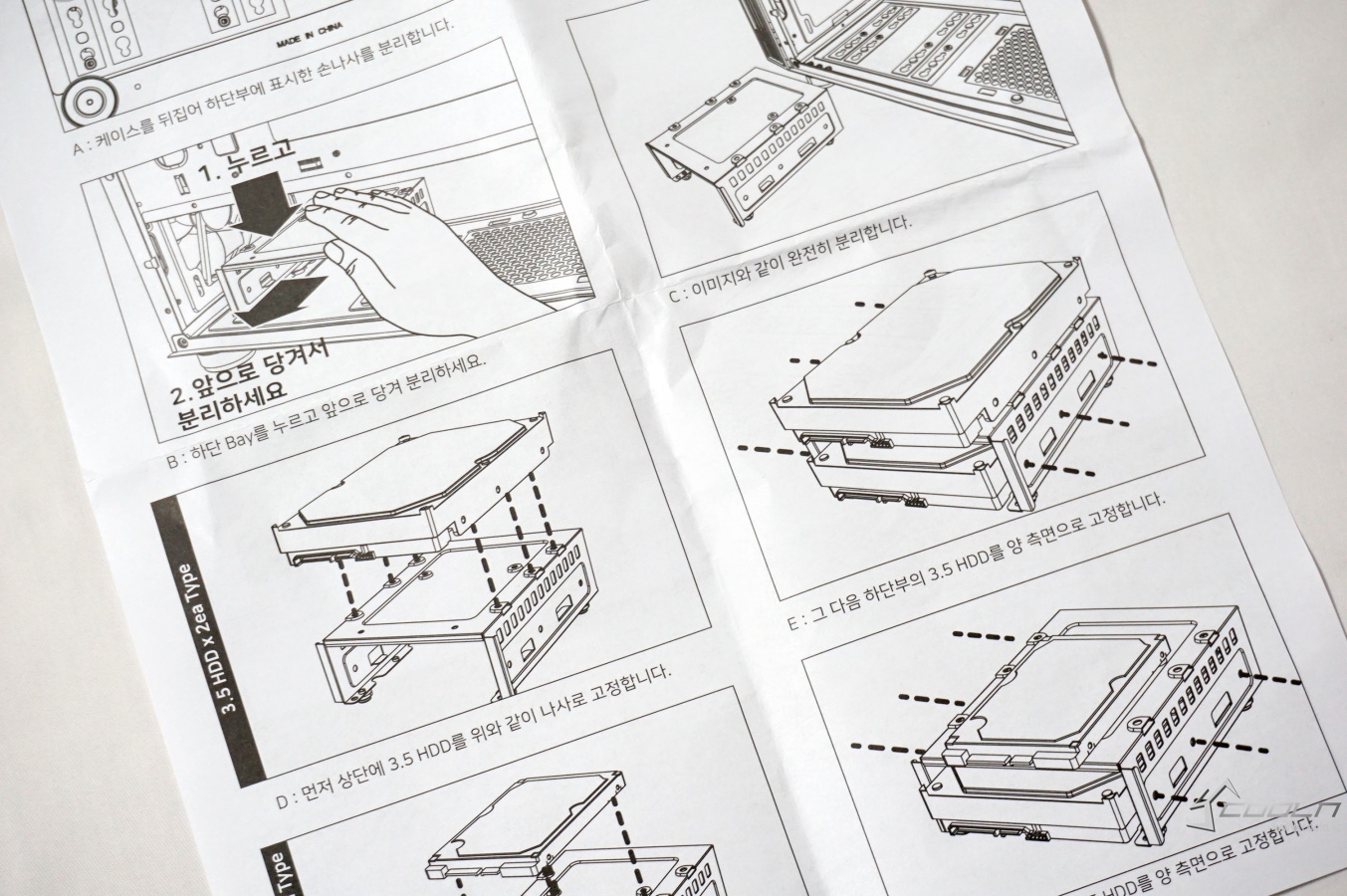 설명서에는 저장 장치 가이드 분리, 장착 방법같이 제품 조립 방법에 대한 설명을 확인할 수 있습니다.