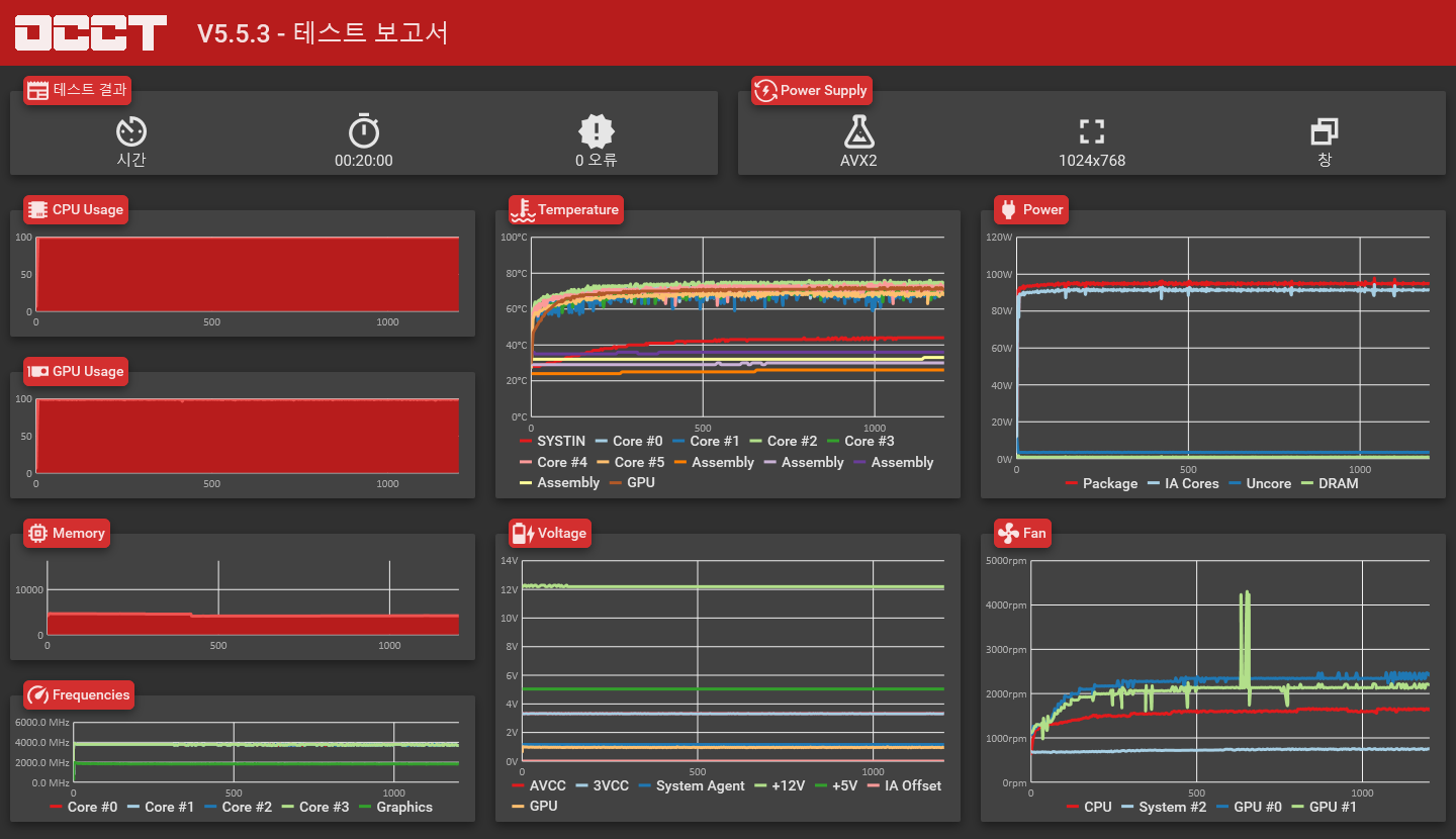 이후 간단하게 OCCT로 저압을 확인하는 것으로 마무리하겠습니다.