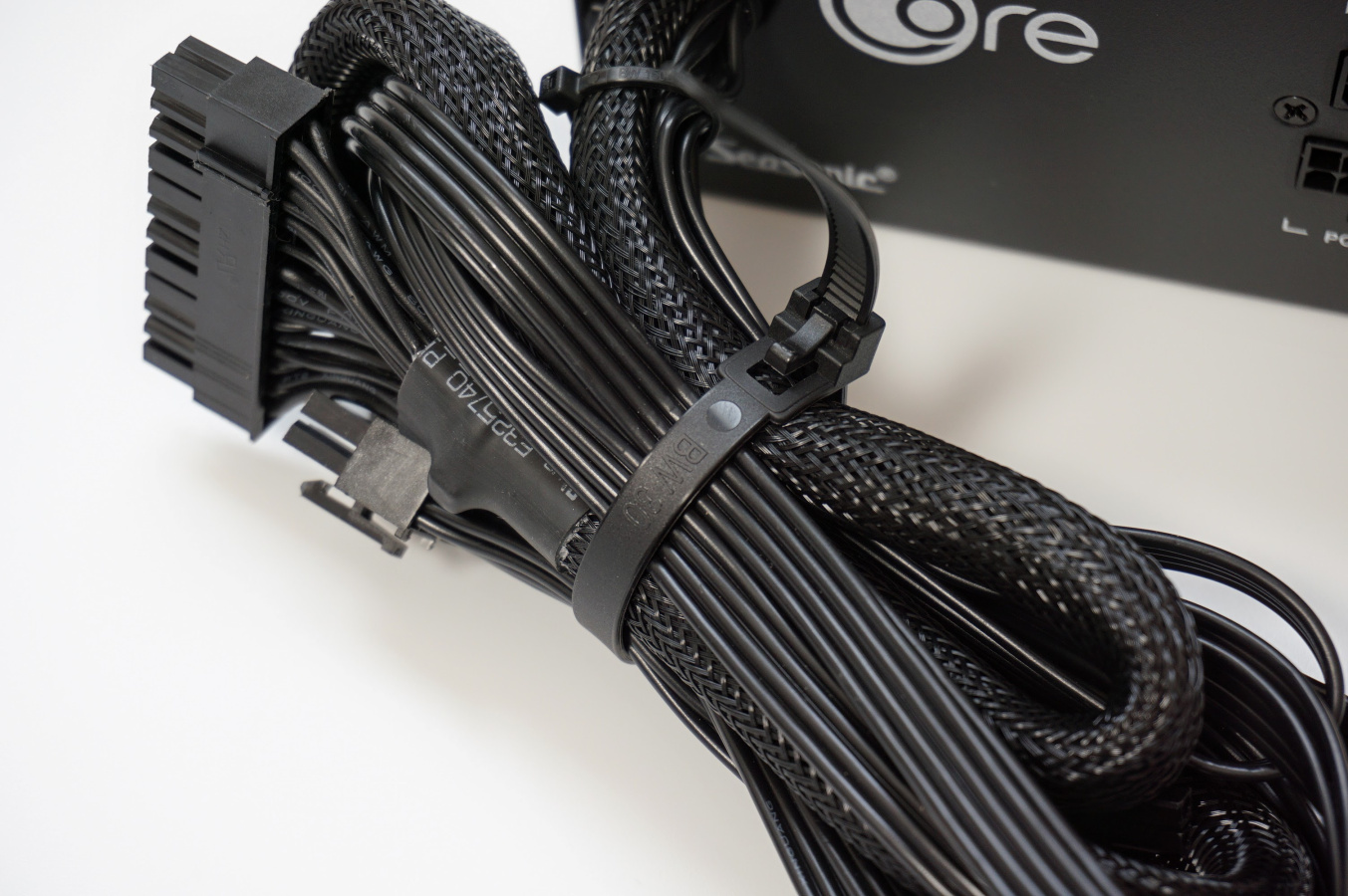 20+4핀 케이블은 슬리빙 처리가 되어 있으며 나머지 케이블들은 플랫 방식으로 되어 있습니다.
