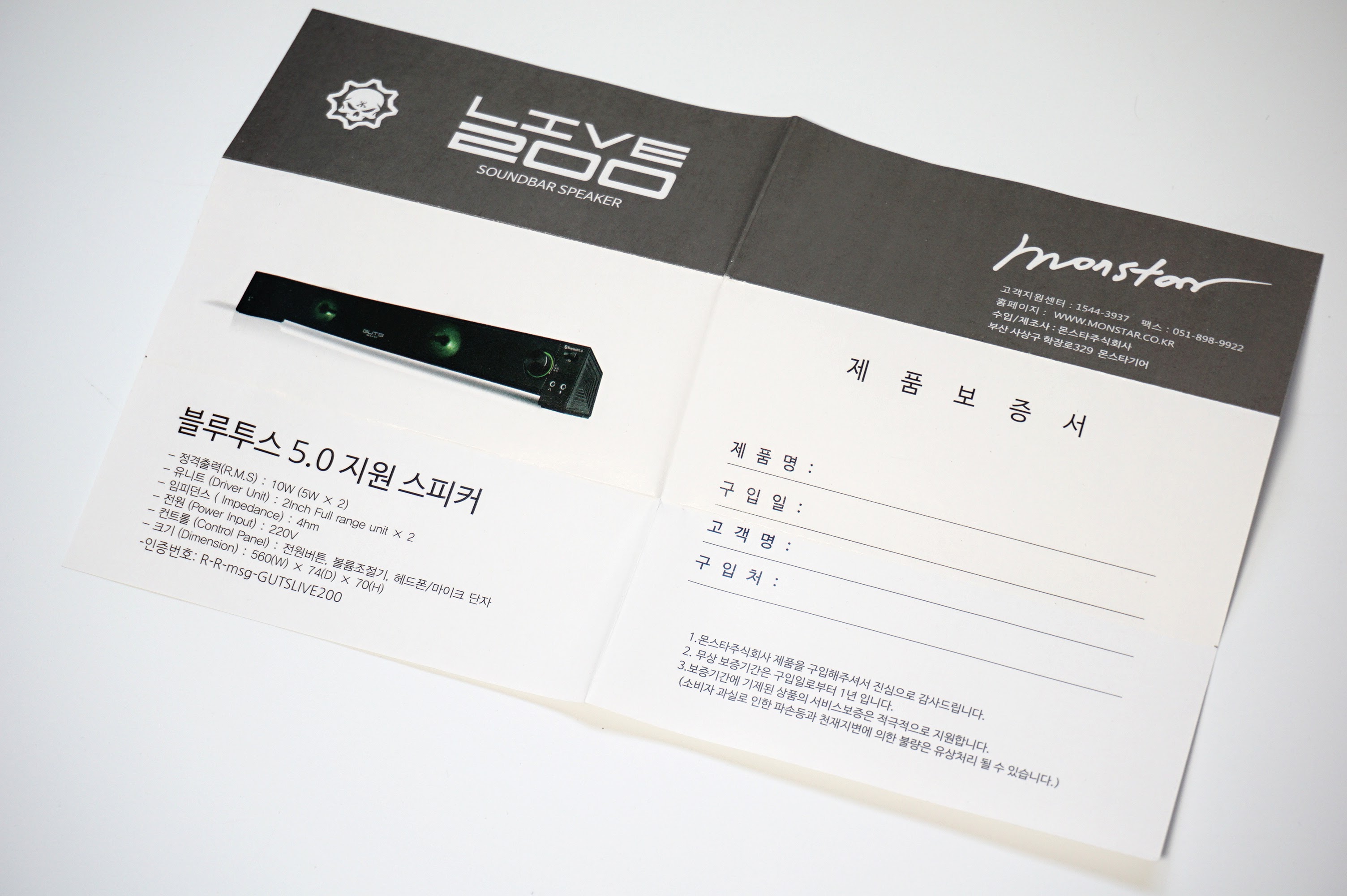간단하게 제품 스펙만 적혀 있어 설명서라기보다는 보증서에 가깝습니다.