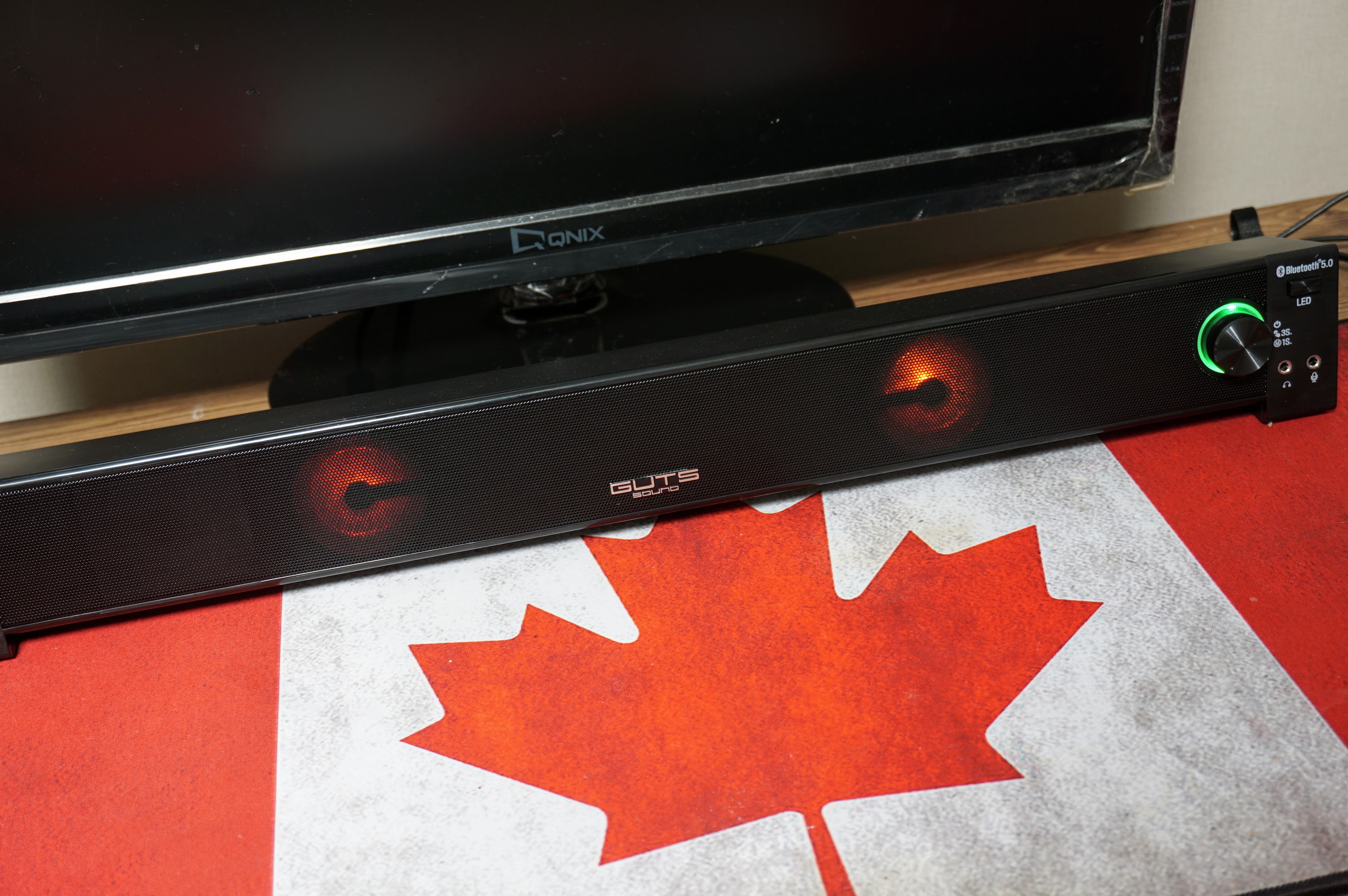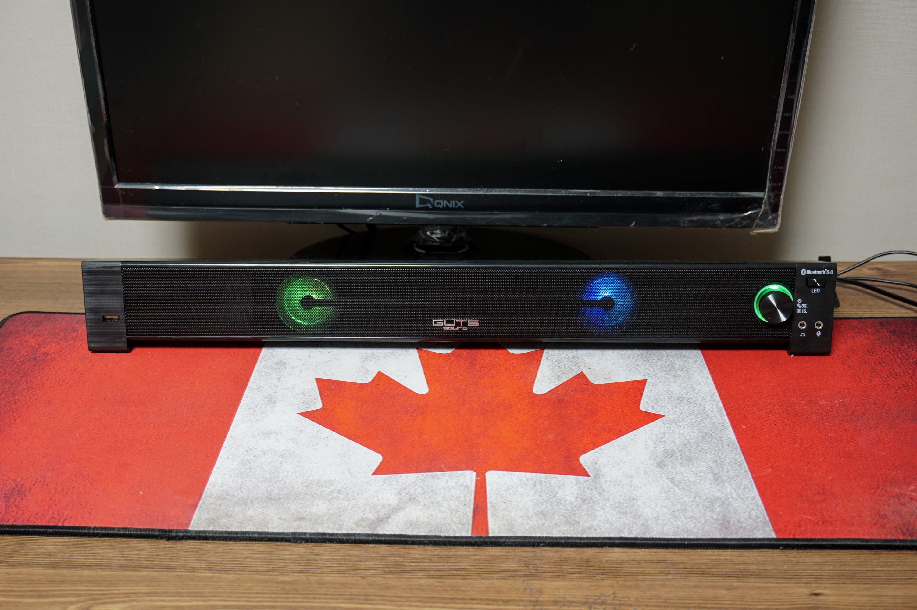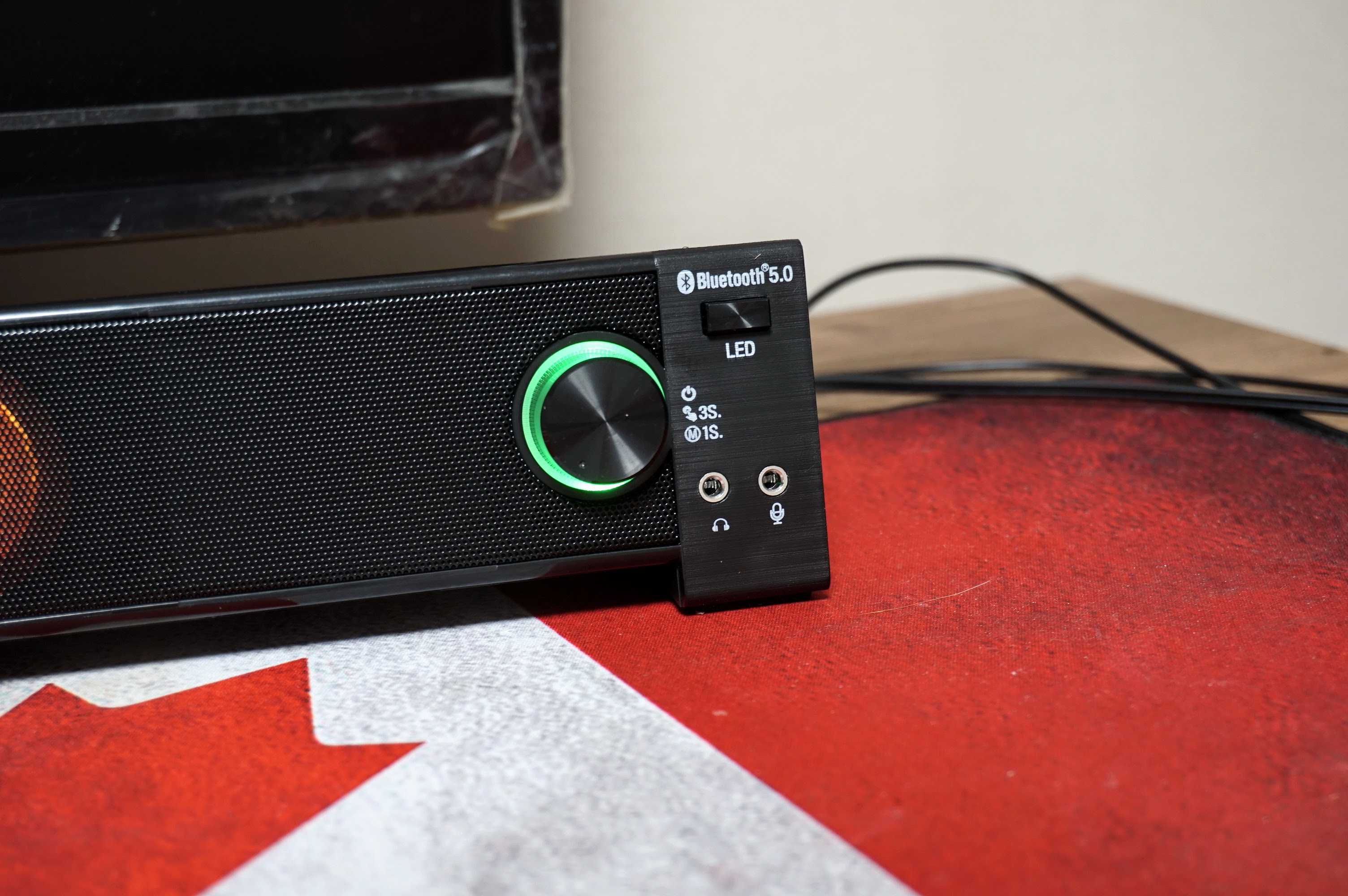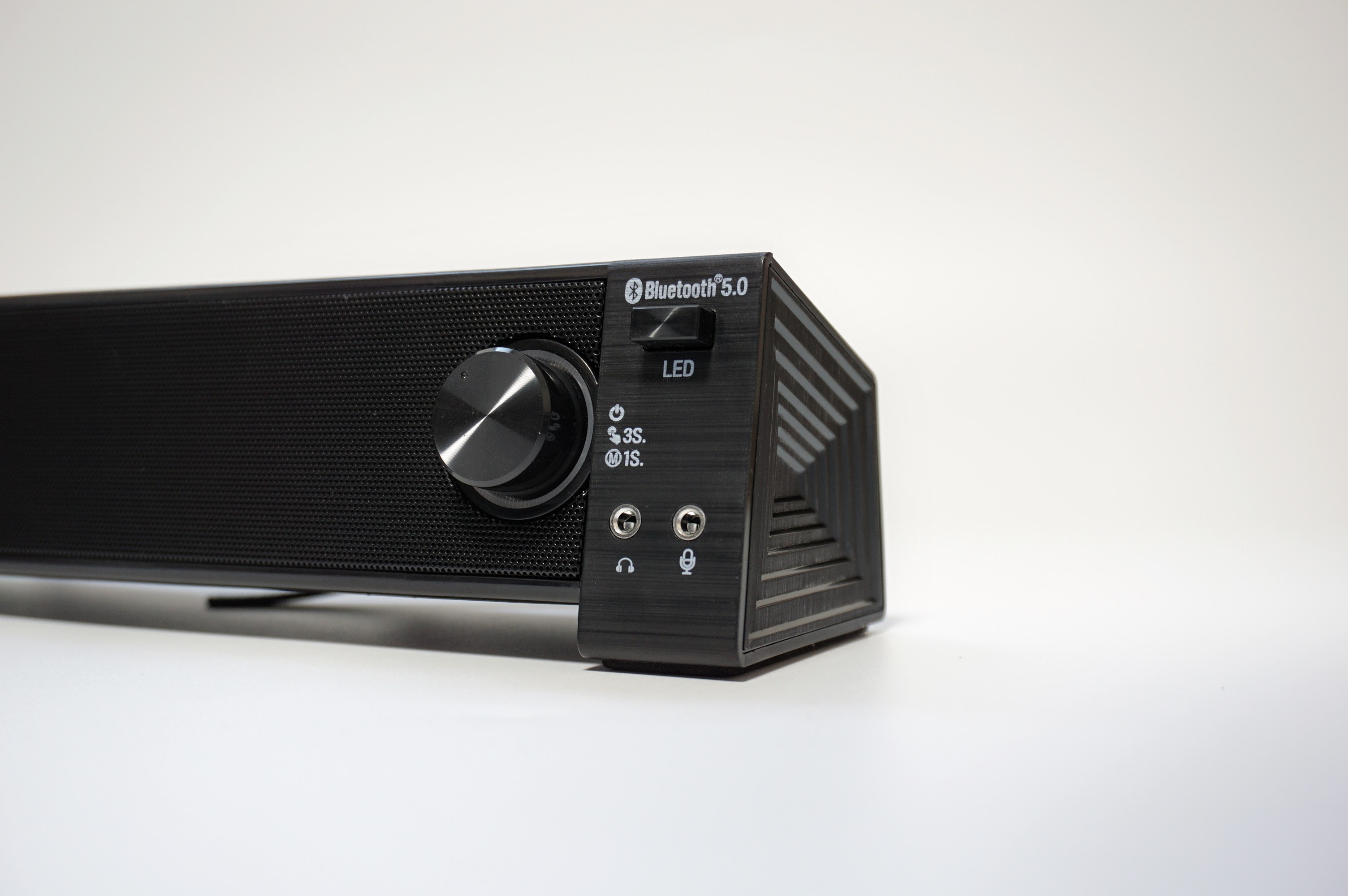 사운드바 스피커는 기다란 형태 덕분에 모니터 밑에 놓고 사용할 수 있어 공간을 좀 더 효율적으로 사용할 수 있다는 장점이 있습니다. 이런 사운드바도 지금의 트렌드라 할 수 있는 LED와 블루투스를 지원하게 되었습니다.