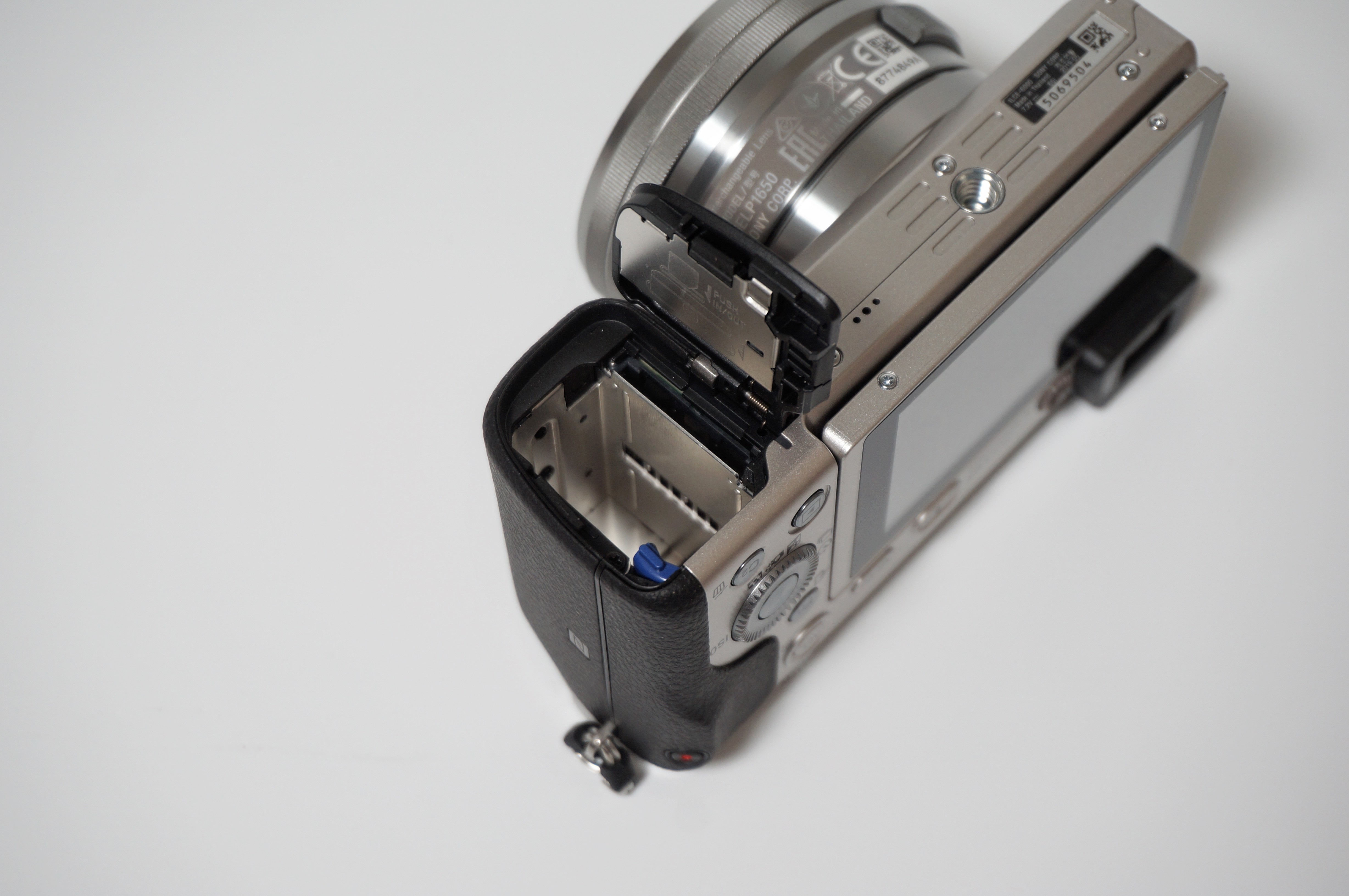 배터리와 SD 메모리 카드는 하단부에 넣어 사용합니다. 개인적으로 측면에서 메모리 카드를 꺼내는 것이 익숙하기 때문에 이 방식은 조금 불편하였습니다.