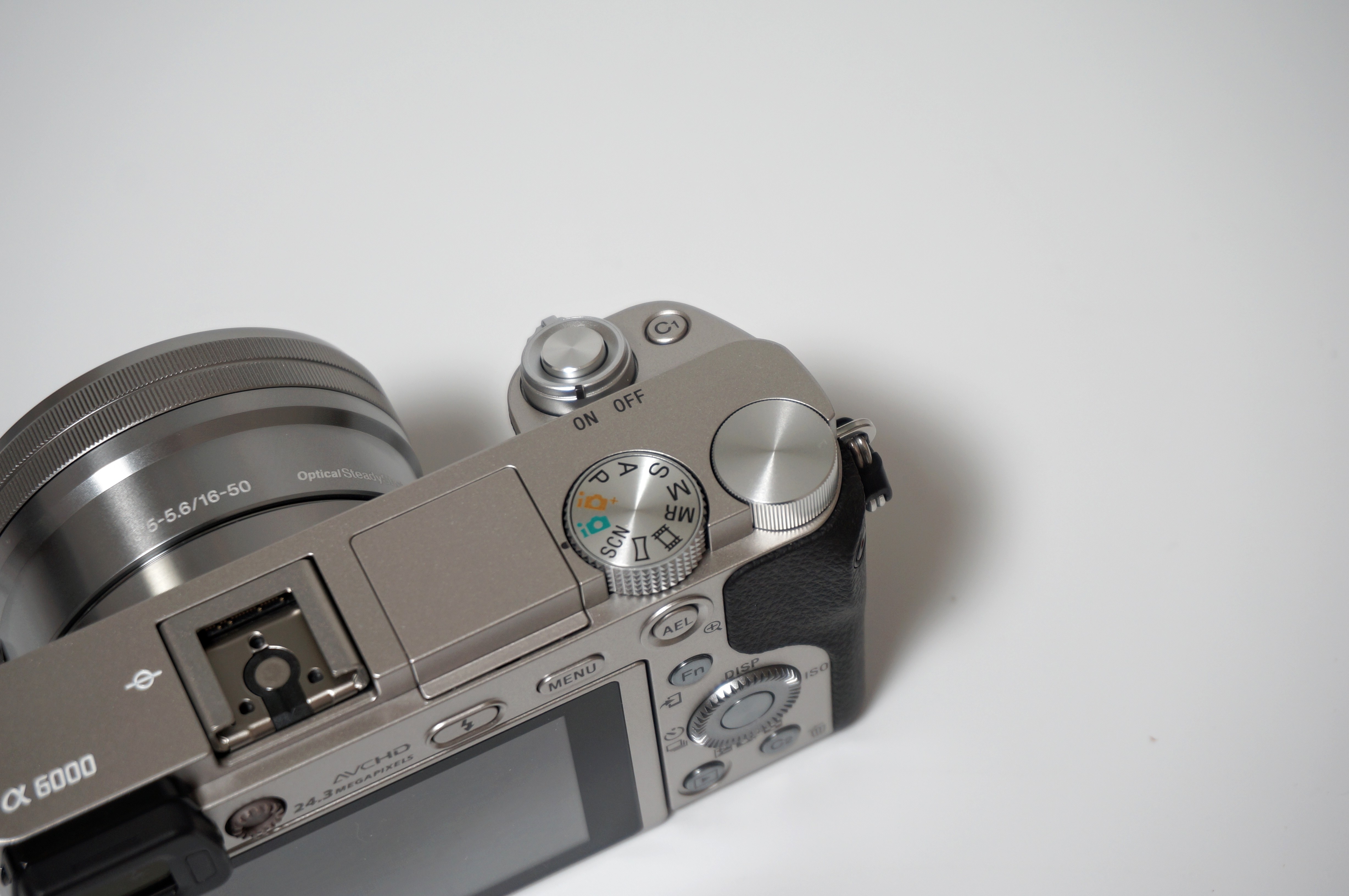 상단에는 플래시, 모드 다이얼, 조작 다이얼, 셔터, 전원 겸용 버튼을 확인할 수 있습니다.