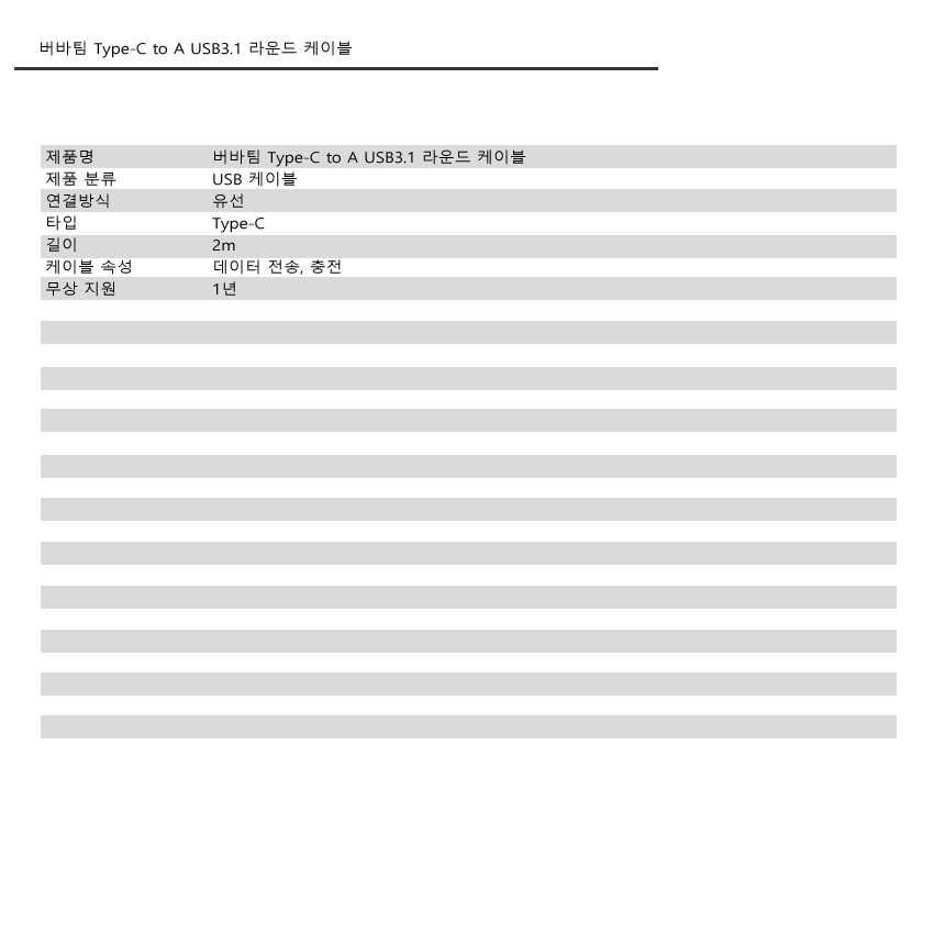 버바팀 Type-C to A USB3.1 라운드 케이블