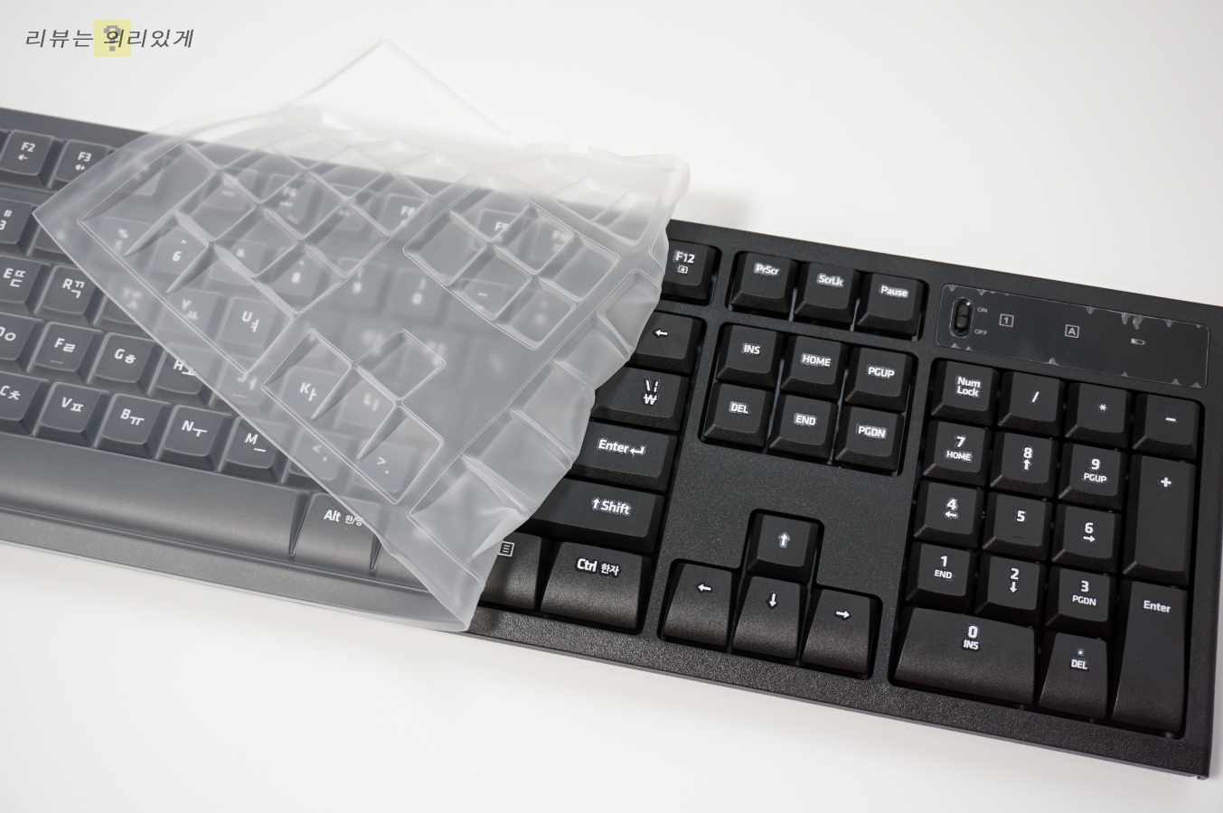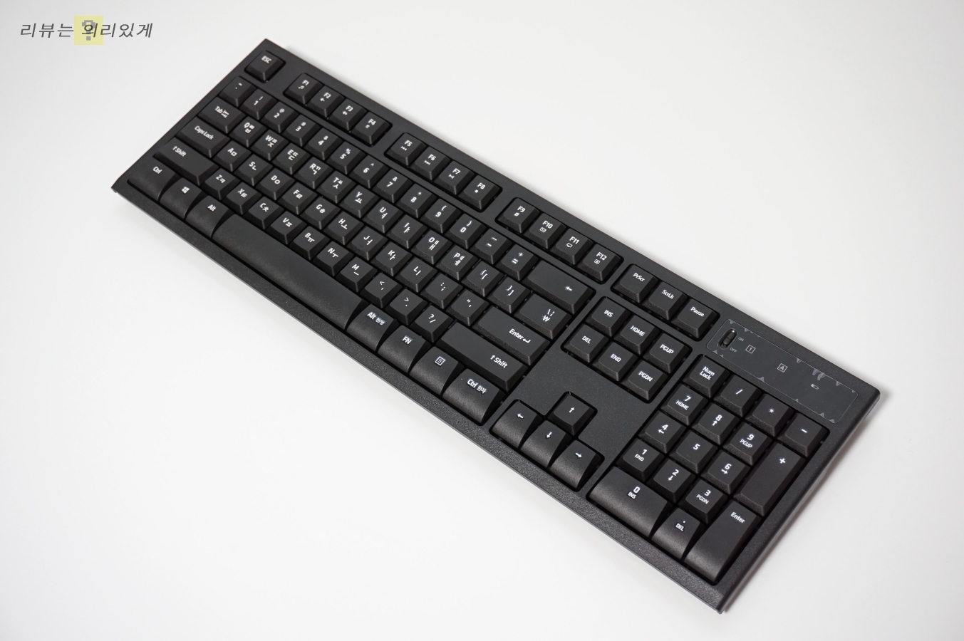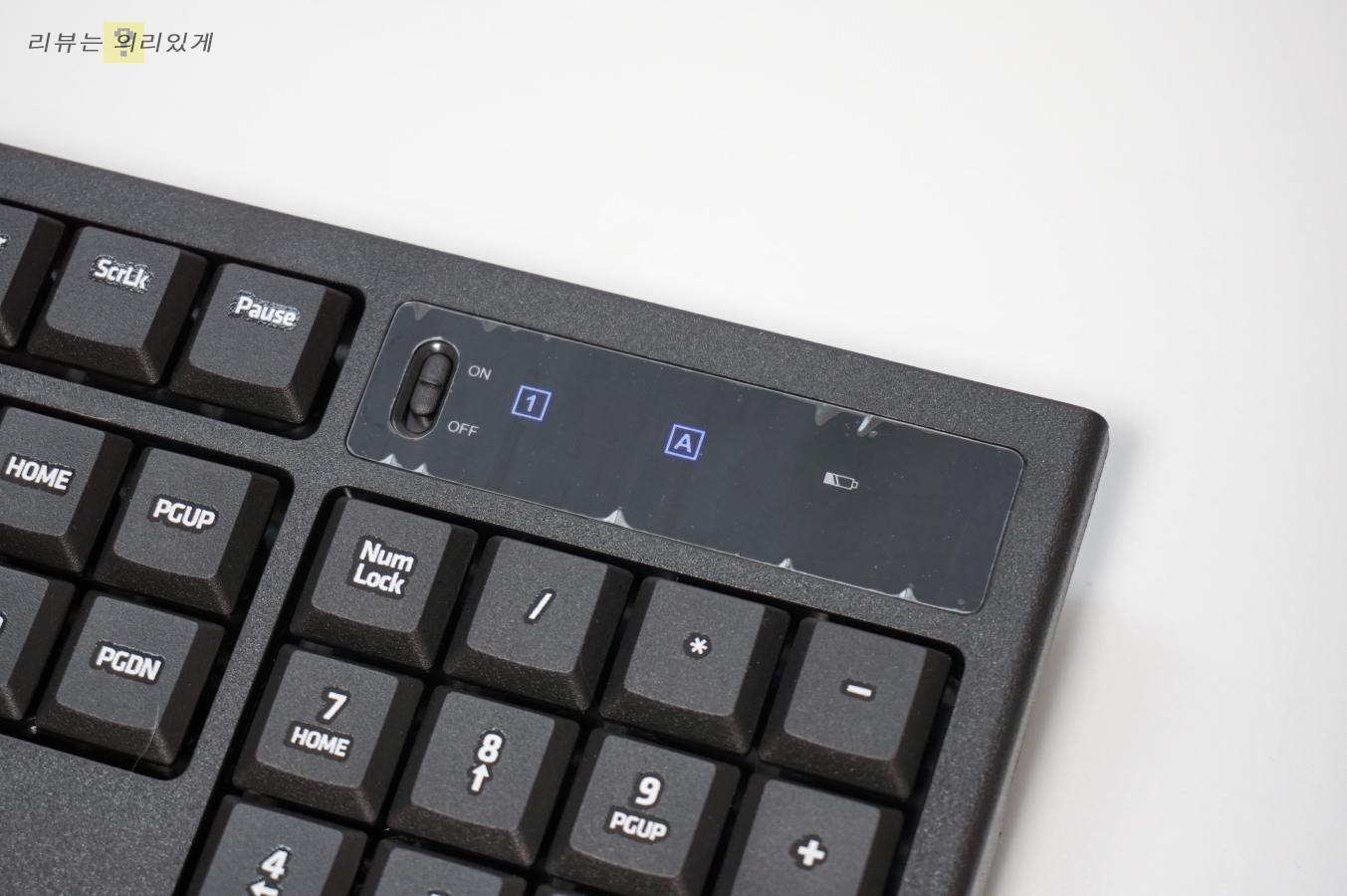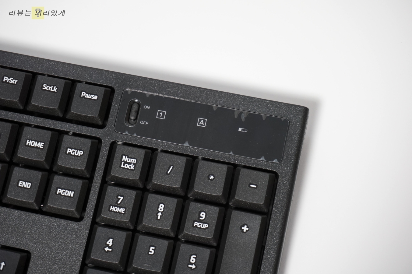 LED 창에는 ON/OFF와 넘락, 캡스록키 상태창이 있습니다.
