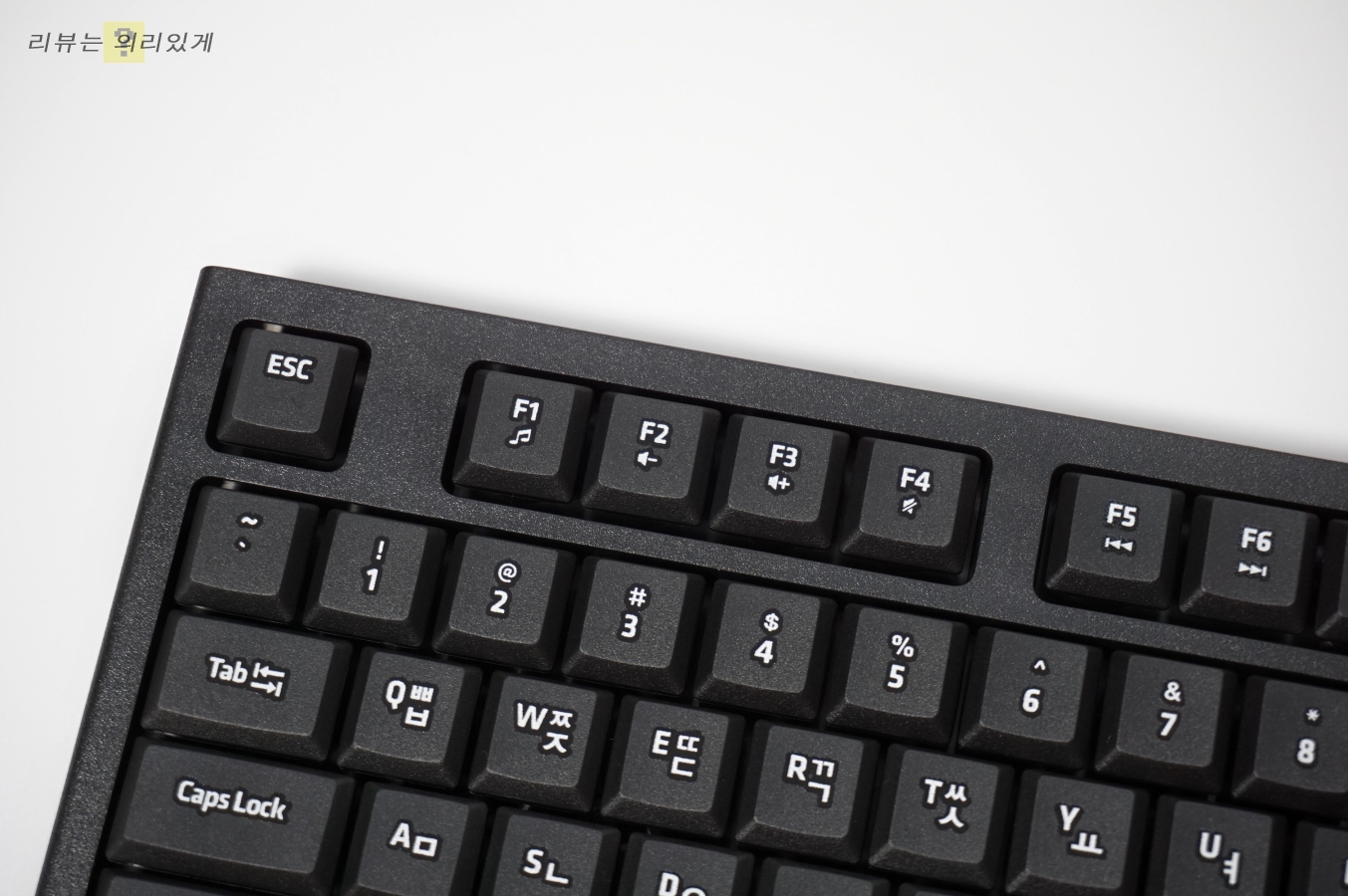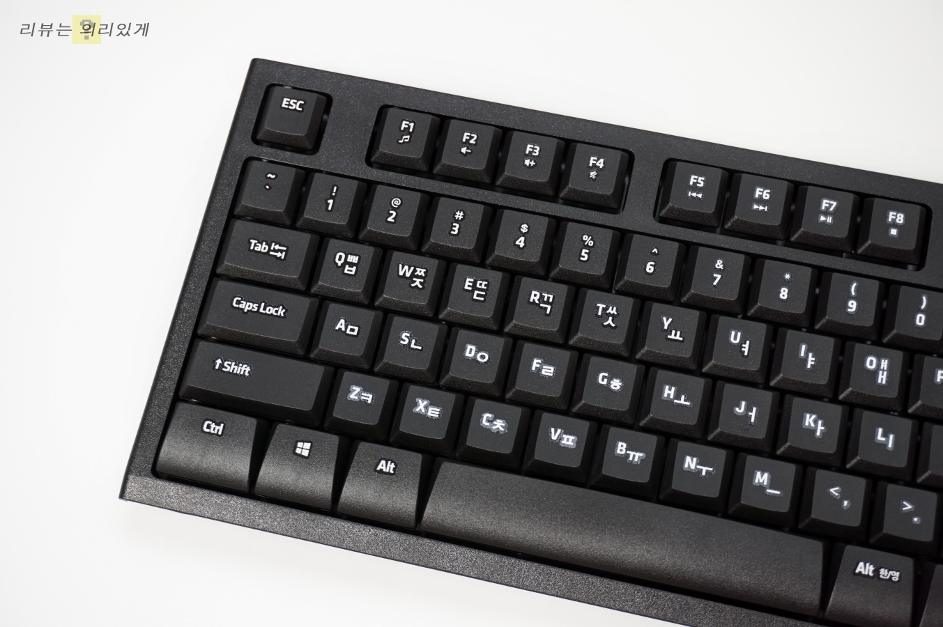 엔터키는 일자형으로 되어 있으며 글씨가 지워지는 것을 방지하기 위해 UV 코팅이 추가로 되어 있습니다.