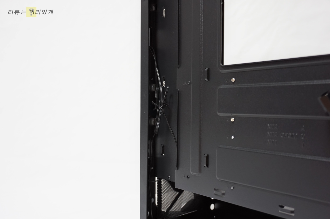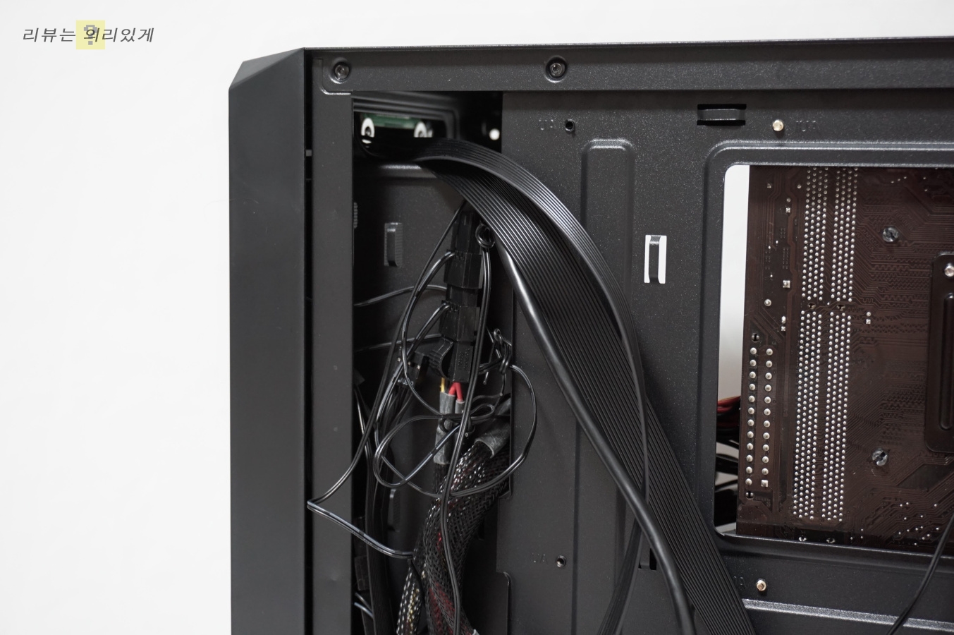 보조전원 케이블을 제외한 대부분의 케이블은 좌측의 선 정리 홀 쪽으로 정리를 해야 하는데 생각보다 그렇게 넓지는 않았습니다.