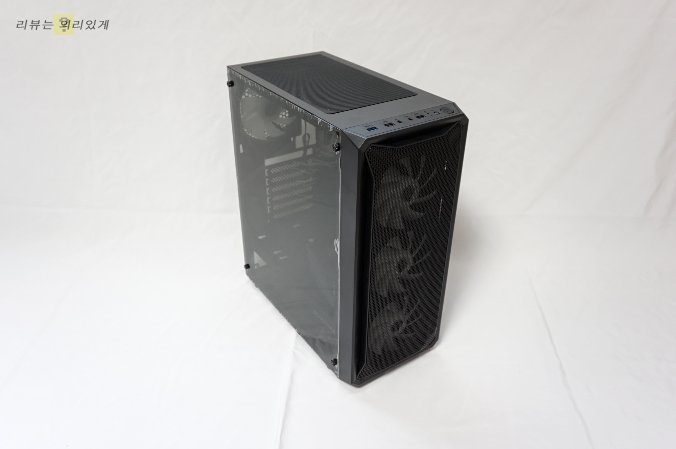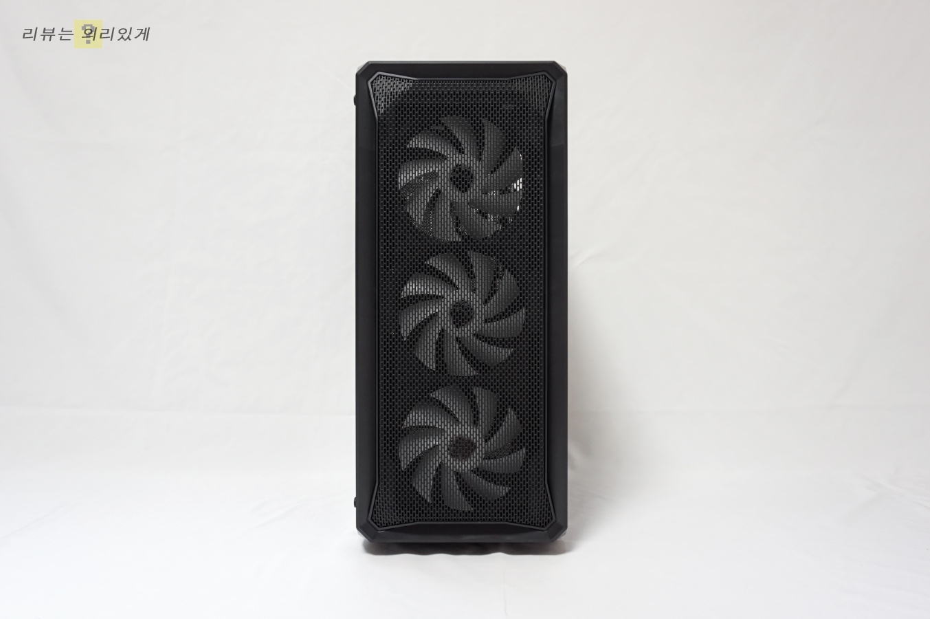 무광 블랙 도장이나 전면부와 케이스 전체를 이어주는 듯한 디자인으로 이 제품만의 약간의 특성을 찾아볼 수 있은 전체적으로는 무난한 미들 타워 디자인. 측면 아크릴은 조금 아쉬운 부분이지만 풀 사이즈로 디자인되었다는 점에서 나쁘지 않습니다.