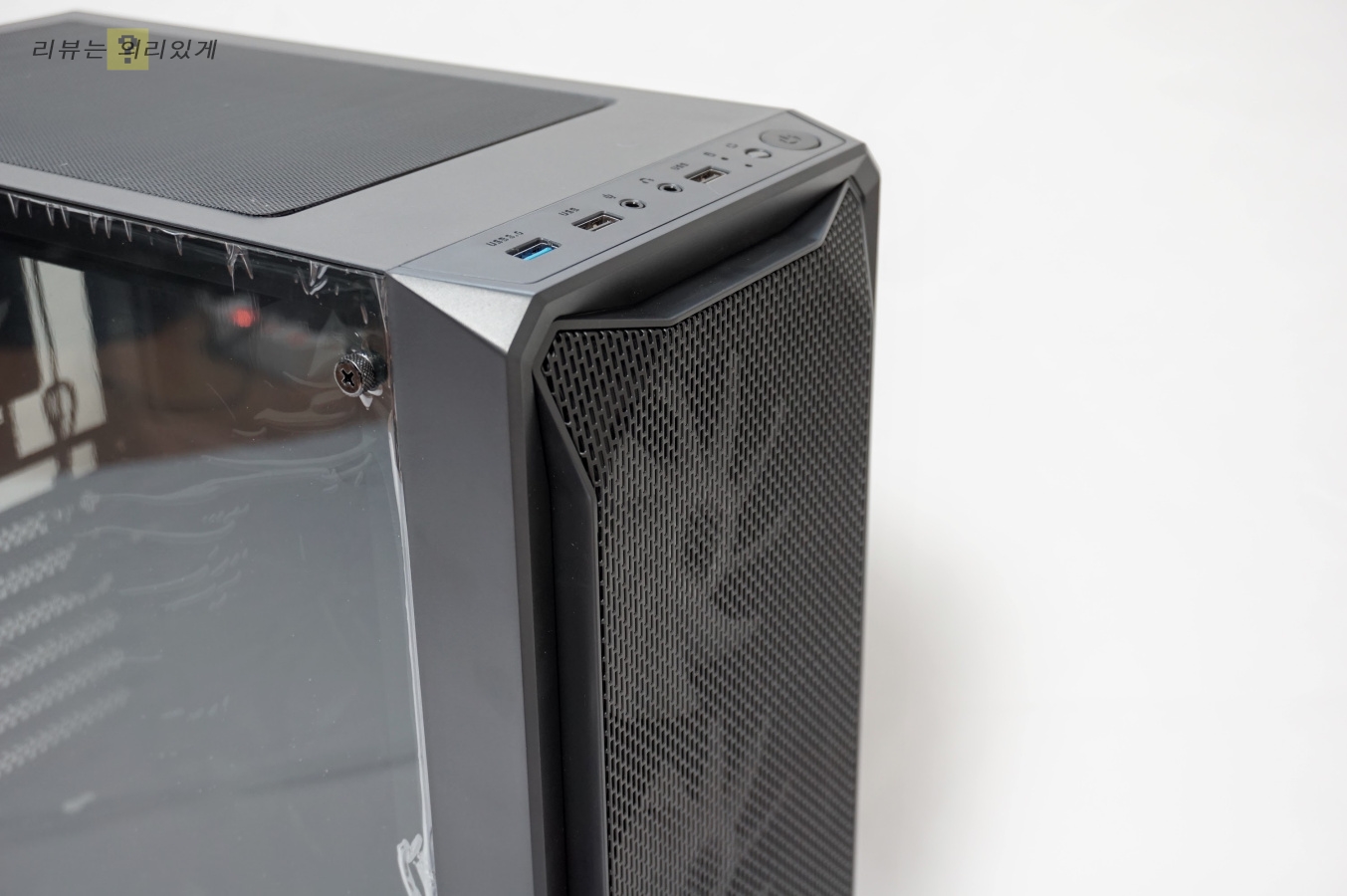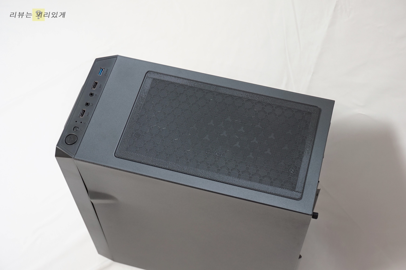 무광 블랙 도장과 전면부 메쉬 그릴 구조로 평범한 PC 케이스 디자인으로 외형에서는 별다른 특징은 없습니다.