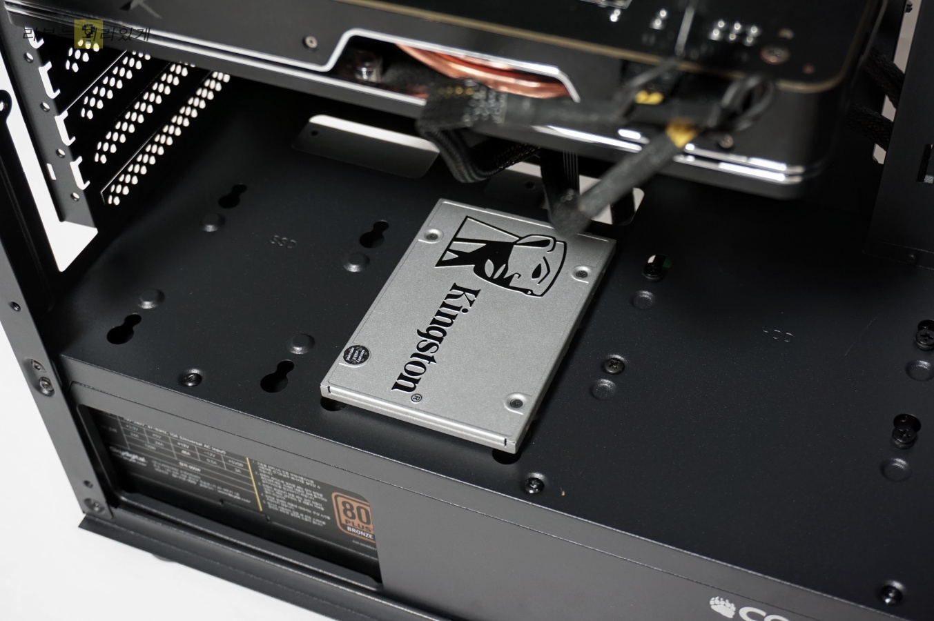 측면에는 장착할 수 없어 위 이미지처럼 내부에 전용 위치에 장착해야 합니다. 파워 쪽에 장착하기 때문에 순서를 생각해서 조립을 진행해야 합니다.
