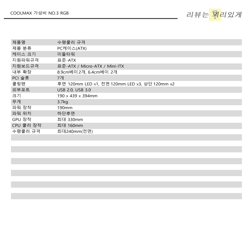 가성비라는 것은 기준에 따라 달라지게 됩니다. 제가 생각하는 가성비는 단순히 케이스 내부에 장착된 팬 개수나 측면 아크릴 같은 부가적인 면뿐만 아니라 조립 시 편의성도 포함되어야 한다 생각합니다. 그런 의미에서 쿨맥스 NO.3 가성비 RGB 케이스는 가성비 있는 제품이 아닙니다.