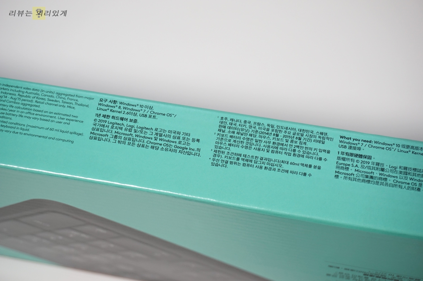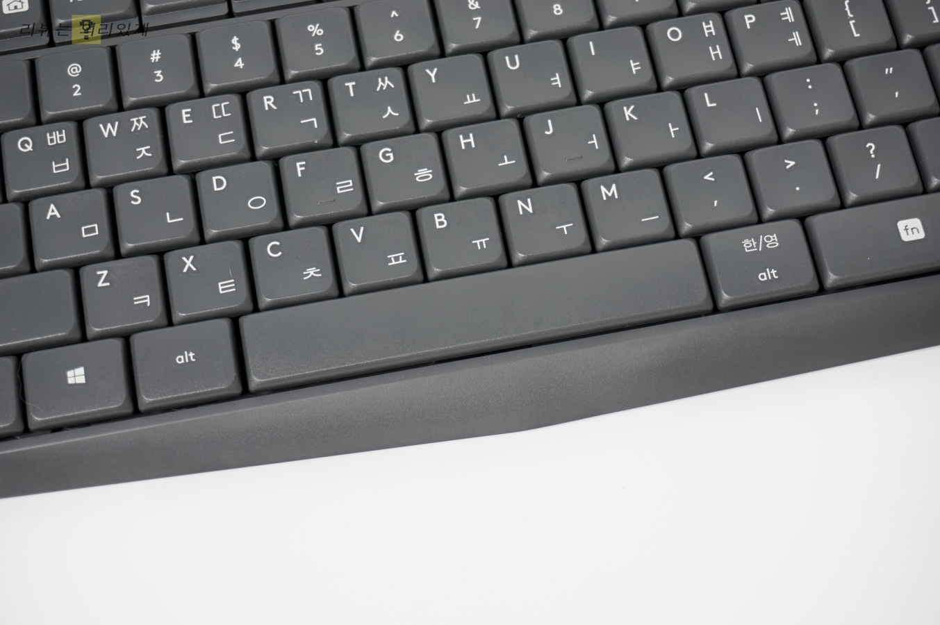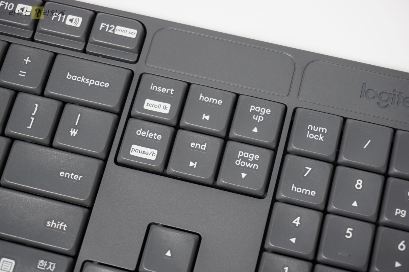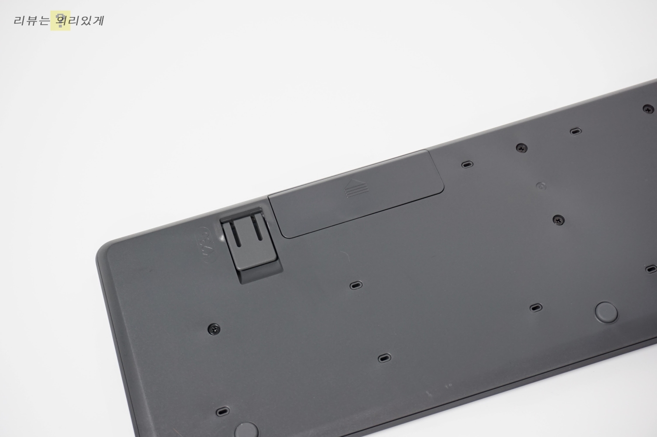 상단 3키와 마찬가지로 생략된 점은 LED 창이 없어졌다는 것입니다. LED가 있어야 할 자리에는 로지텍 로고만 있어 LED로 확인하는 편리한 기능을 이용할 수 없습니다.