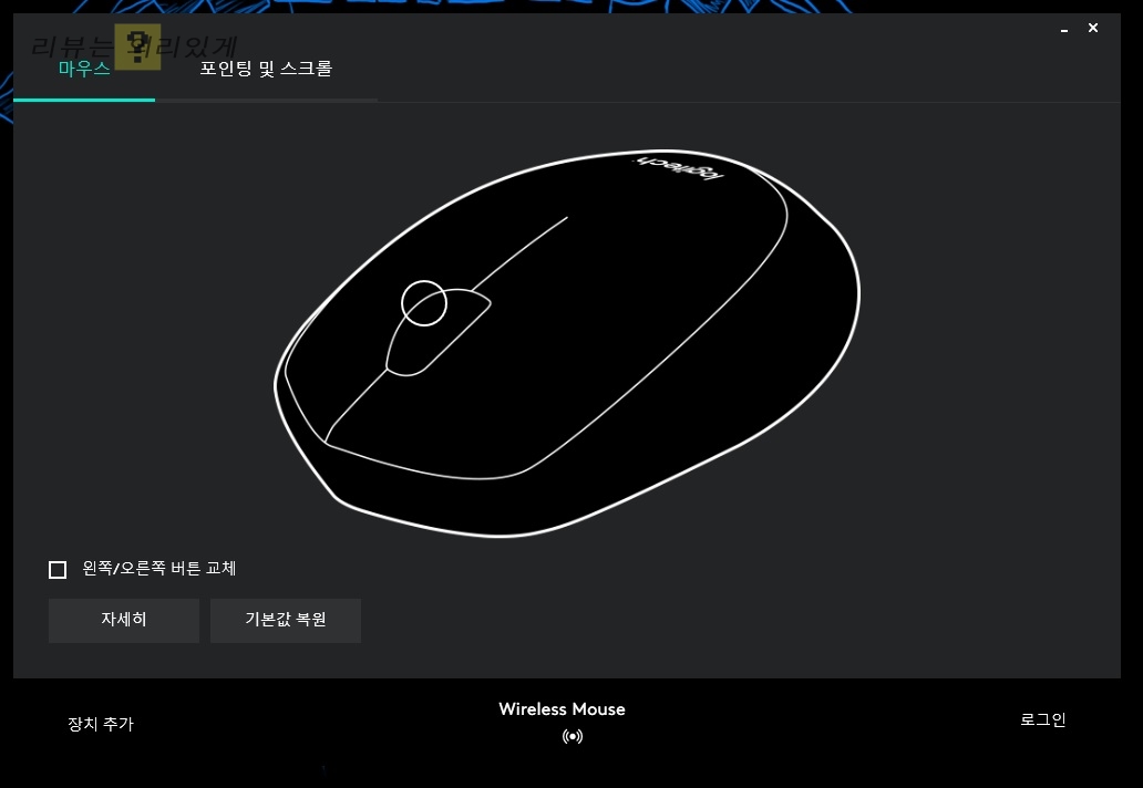 상품 정보에는 확인을 못하였지만 마우스는 소프트웨어 지원을 합니다. M170이라는 이름으로 마우스 단독으로 판매하고 있는데 여기서 소프트웨어에 대한 정보를 확인할 수 있었습니다. 소프트웨어는 마우스, 포인팅 및 스크롤 메뉴로 구분되어 있습니다.