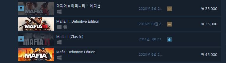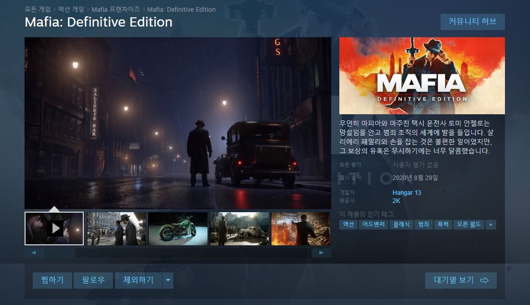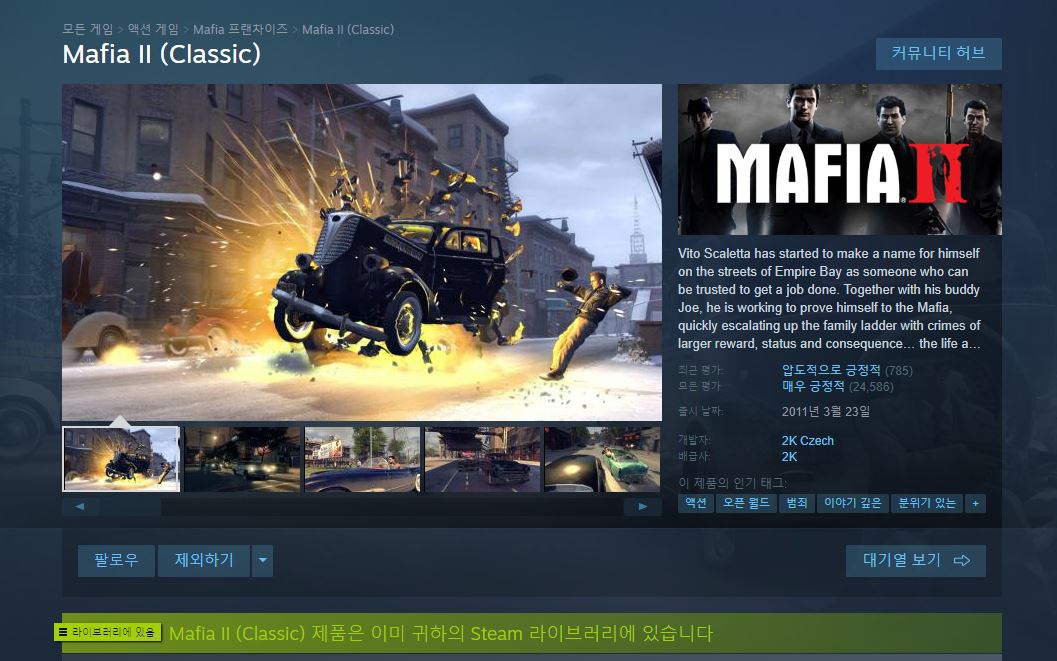 혹시 스팀 라이브러리에 마피아 2가 있다면 마피아 2 데피니티브 에디션이 있는지 확인하셔서 공짜 게임? 을 즐겨보시기 바랍니다.