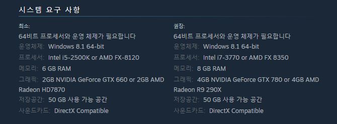 클래식에 비해서 요구 사양이 조금 오른 모습.