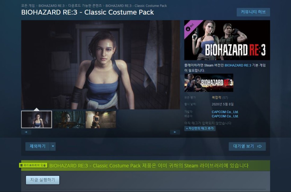 바이오하자드(레지던트이블) RE:3 DLC가 추가되었습니다.