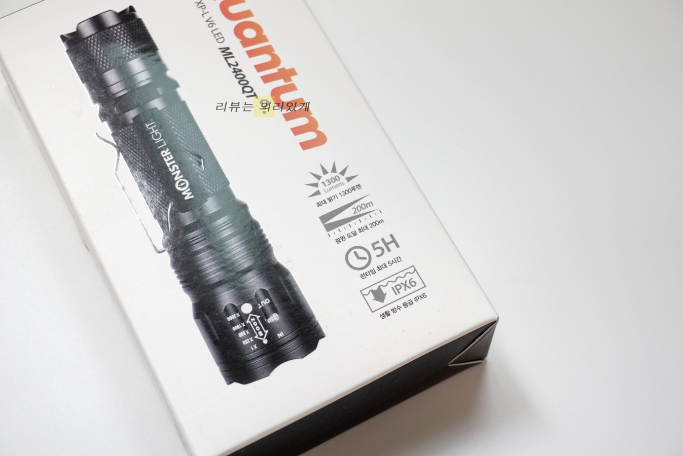 미국 CREE사 정품 LED 모듈인 XP-L V6을 사용하고 있으며 최대 1300루멘의 밝기를 지원합니다. 제품 스펙 상 강 밝기 3,400mAh 배터리 기준 5시간 사용이 가능하며 최대 광원 도달 거리는 200m입니다. 그 외 특징으로 컨벡스 렌즈가 사용되었습니다.