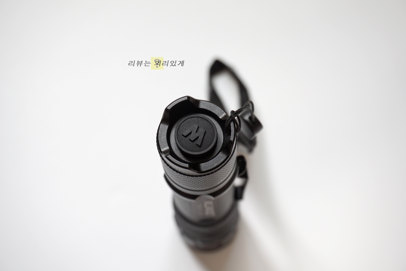 외형만 봐서는 스트랩이 부착되어 있어 자전거 라이트보다는 LED 후레쉬 같은 느낌이며 전체적으로 알루미늄으로 마감되어 있어 무게감 있습니다. 제품에는 하드 아노다이징 방식이 적용되었는데 일반 아노다이징에 비해 경도가 약 4배 높으며 가공 비용 또한 약 3배 정도 높은 편. 피막 두께가 40 미크론 이상으로 두꺼워진 만큼 가격 이상의 퀄러티를 기대할 수 있습니다.