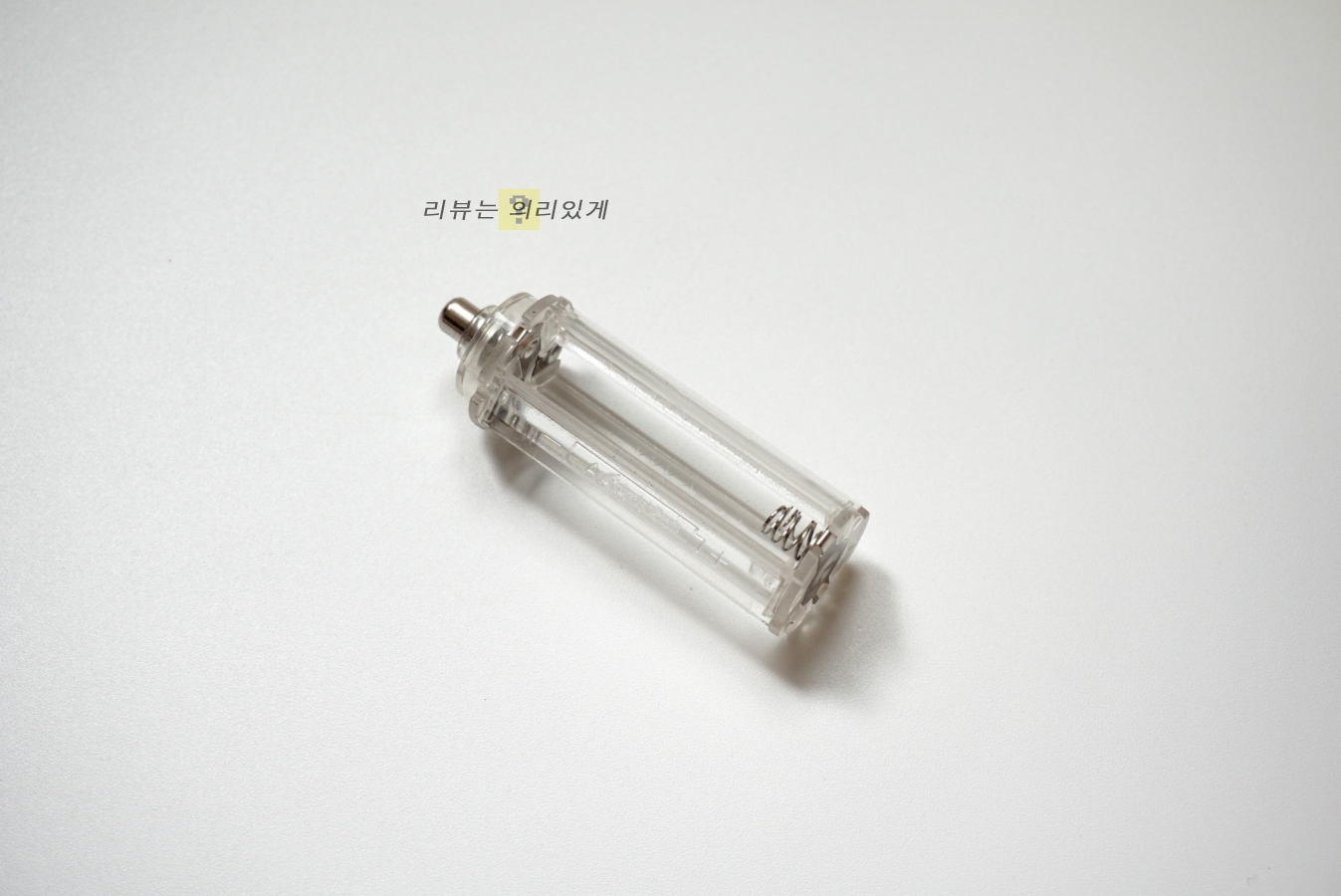 제품 내부에는 AAA 배터리 홀더가 들어 있는데 이걸 사용하는 경우 AAA 배터리 3개가 필요합니다. 제품 스펙상 AAA 배터리보다는 같이 판매 중인 충전지를 사용하는 것이 좀 더 오래 사용할 수 있습니다.
