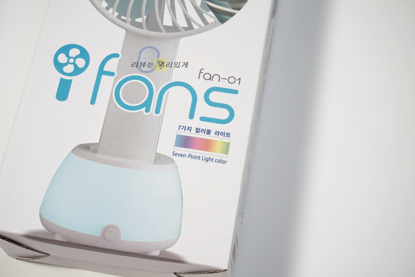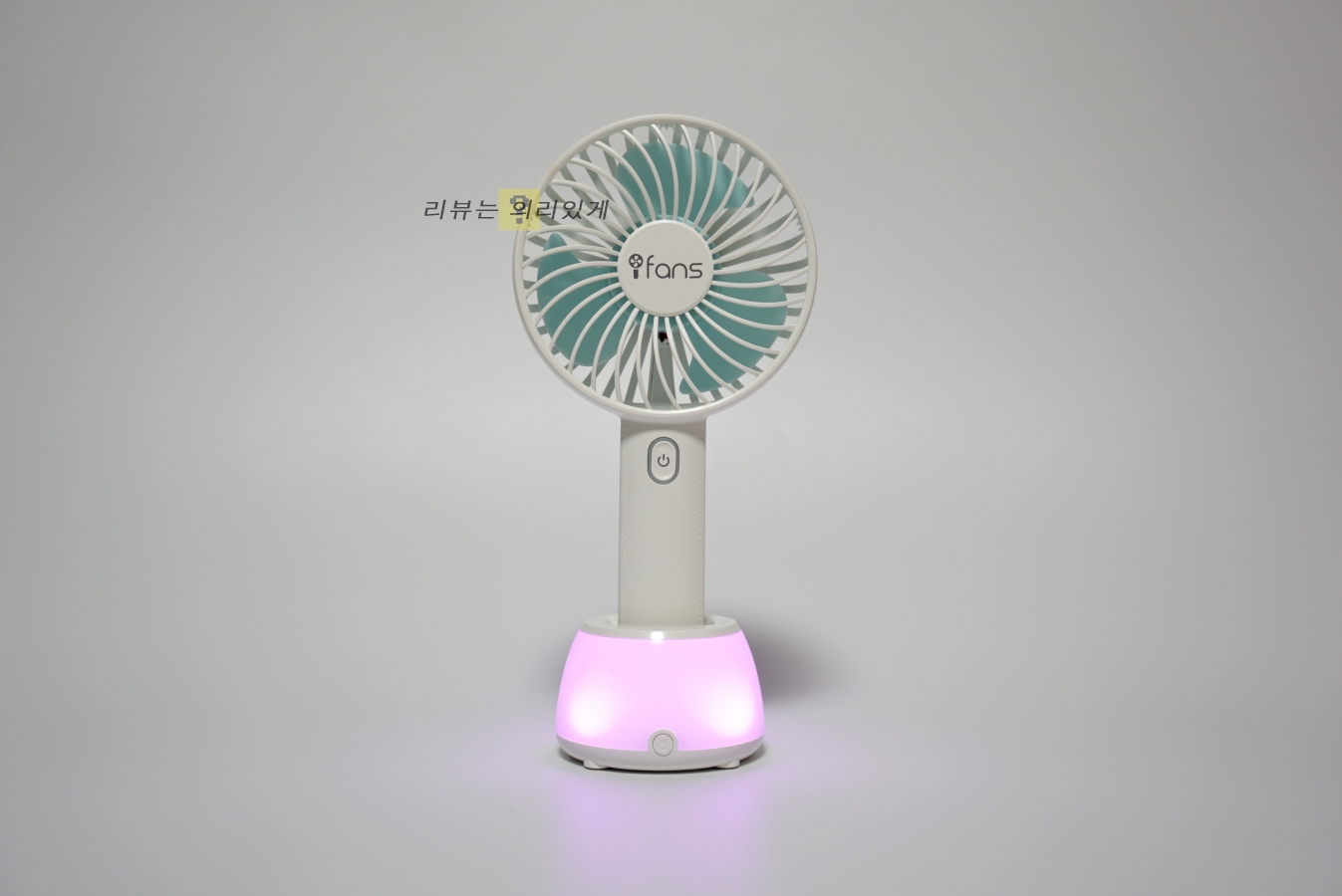 단순히 휴대용 선풍기로 사용이 가능하지만 거치대를 같이 사용하면 무드 등으로 활용이 가능합니다. 팬 속이 시끄러운 것은 팬 크기가 작으며 3엽 날개로 되어 있는 것과 기본적으로 RPM이 높기 때문에 어쩔 수 없는 부분이라 할 수 있습니다. 소음에 민감하다면 다소 꺼려지는 부분.