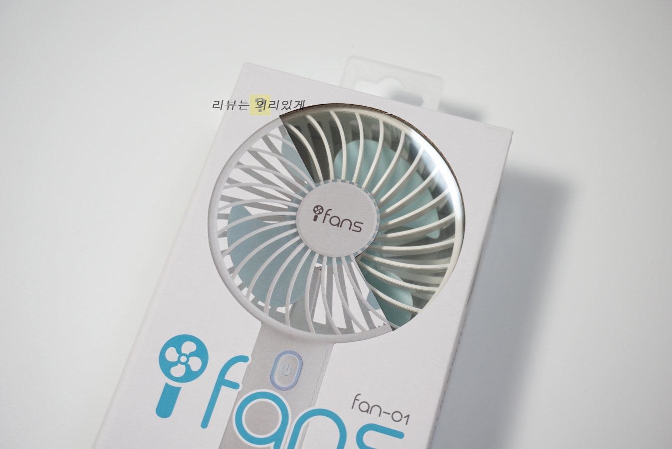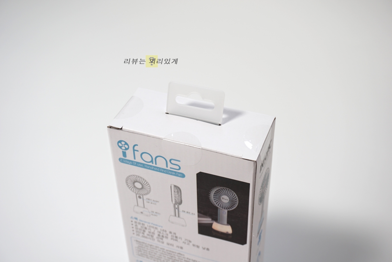 상단에 팬이 하단에는 그립 할 수 있는 막대기 형태로 되어 있는 전형적인 핸드형 선풍기의 형태.
