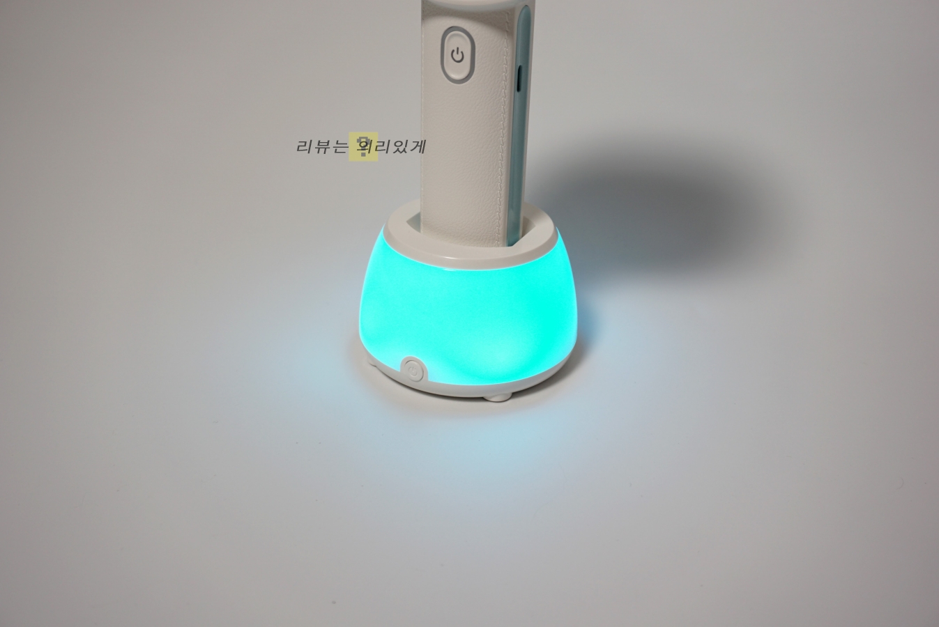 거치대는 단순히 거치하는 용도로 사용이 가능하지만 LED 무드 등으로 사용할 수 있습니다. 다만 사용을 위해서 반드시 선풍기를 거치대를 사용해야 한다는 특이점이 있으며 다양한 LED 색상과 모드를 지원하는 것을 확인할 수 있었습니다.