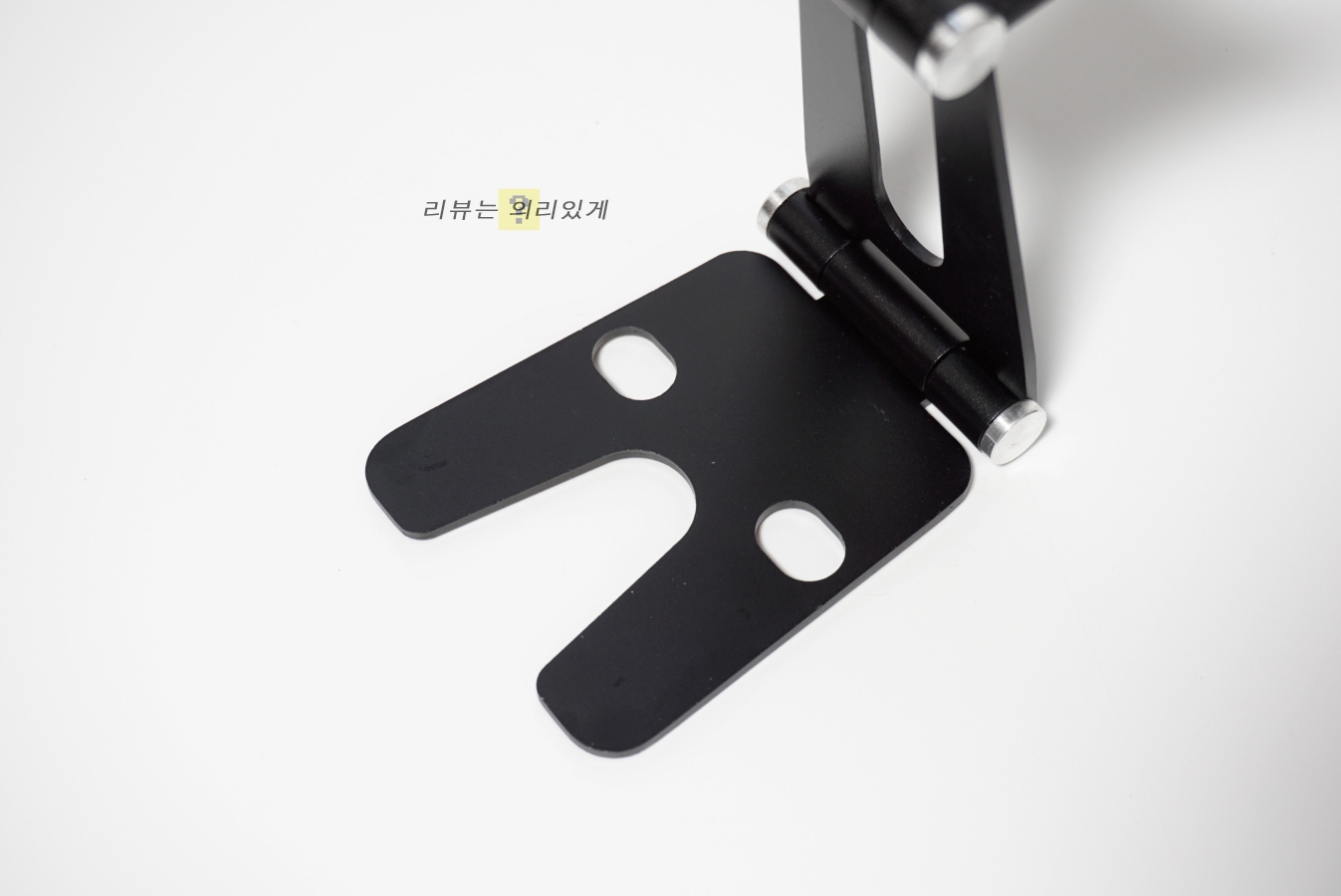 제품 사용 시 너무 뒤로 조절하지 않는다면 웬만해서는 거치대가 넘어질 가능성은 없습니다. 각도 조절은 하단, 상단 각각 가능하며 상단 거치부에는 고무 패드가 부착되어 있어 쉽게 미끄러지지 않습니다. 거치대 가운데에 구멍으로 충전 케이블을 선 정리하여 사용할 수 있으며 어떤 방향이던지 사용이 가능합니다. 또한 제품을 사용하지 않는다면 접어서 완전히 납작하게 하거나 제공하는 전용 파우치에 넣고 보관할 수 있습니다.
