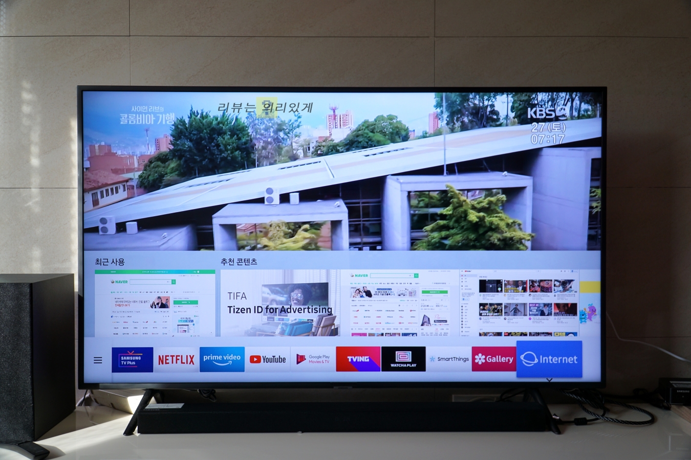 국내에서 TV를 구매한다면 노브랜드나 중소기업 같은 가격 대비 저렴한 제품이나 삼성, LG 같은 브랜드 제품을 선택하는 게 일반적인데 저는 브랜드 제품을 선택하였습니다. 생각하는 가격대를 고려하면 많은 것을 바라기 않았기에 소비 등급 1등급과 49~55인치 정도의 TV를 찾고 있었는데 UN55RU7470F를 발견했습니다. 사운드 바까지 세트로 판매하고 있어 고민 없이 바로 구매하였으며 약 6개월 정도 아무 문제 없이 사용하고 있습니다.