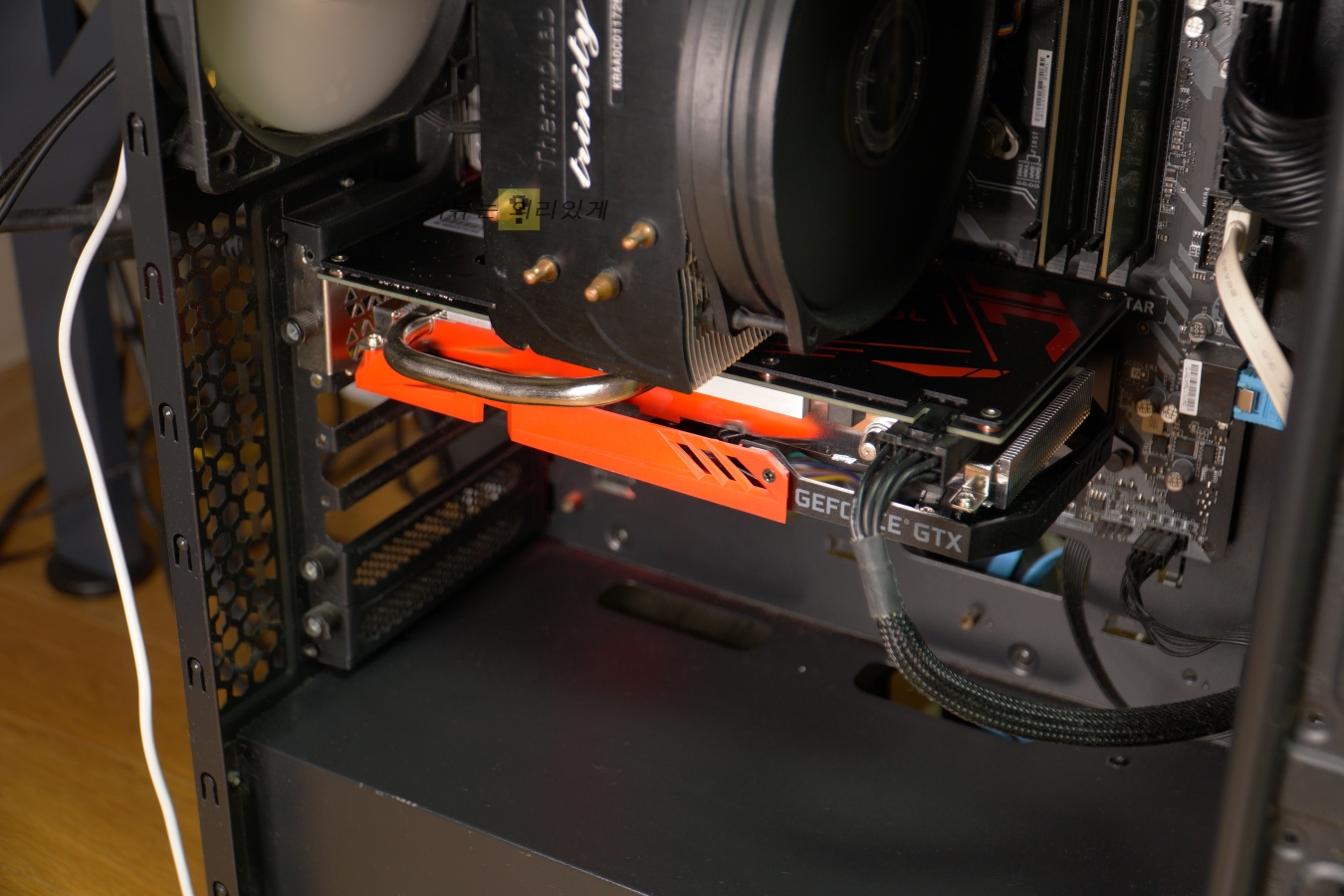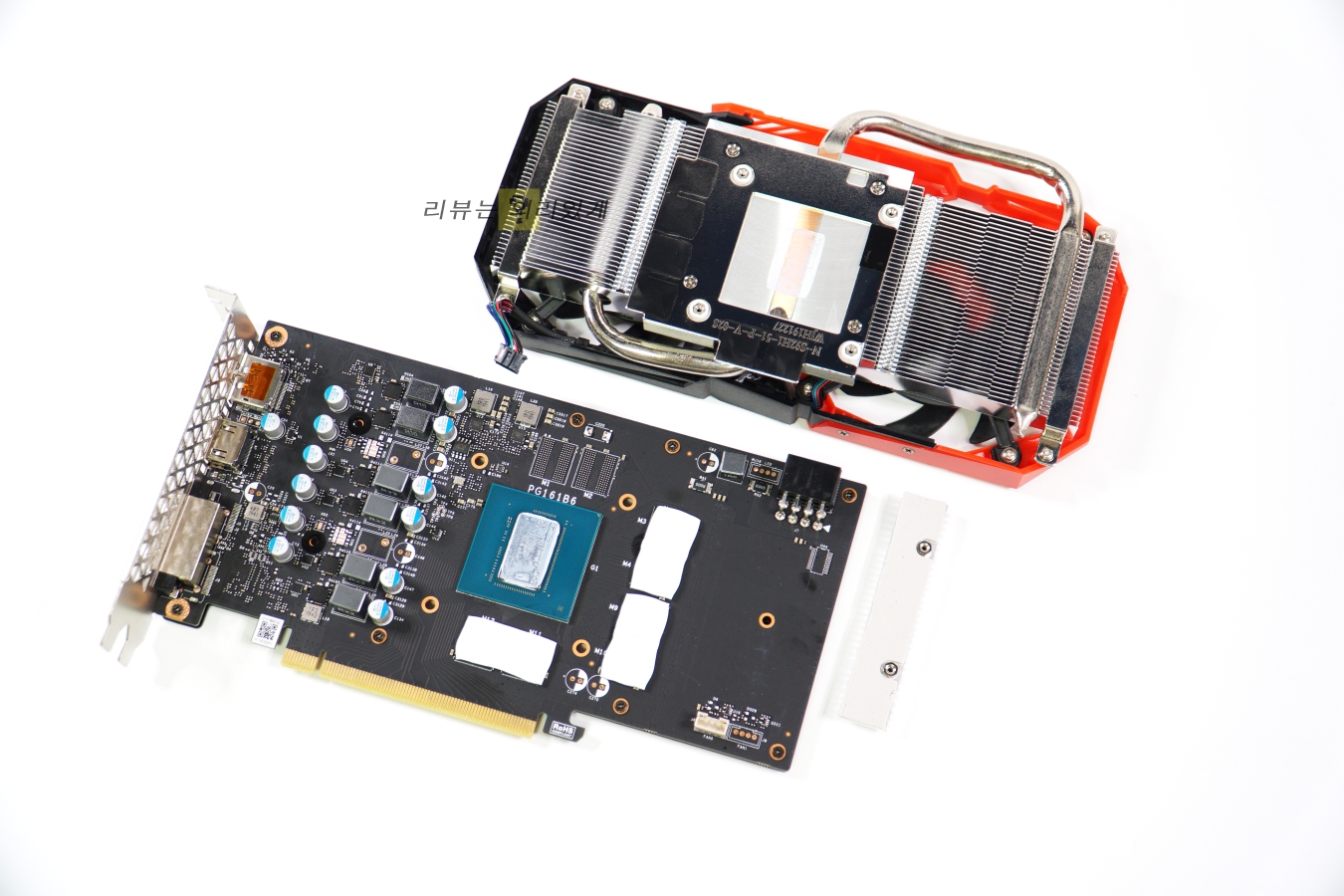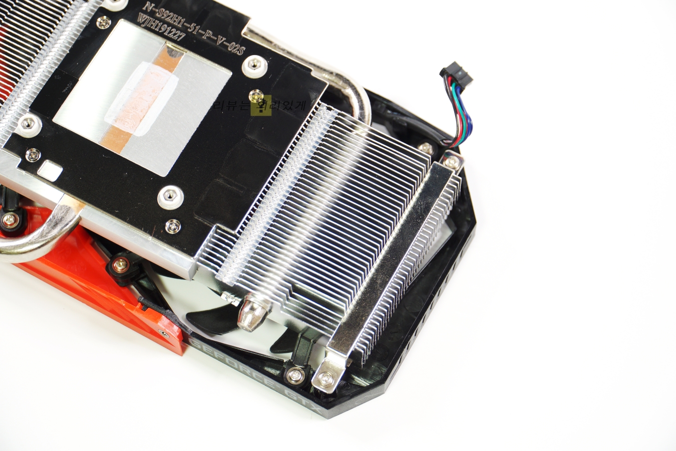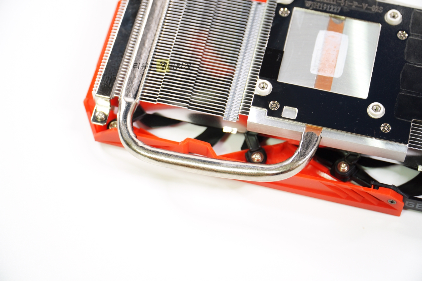 히트파이프 1개가 GPU와 직접 맞닿는 방식을 사용하고 있으며 S자 형태로 길게 이어져 있으며 VRAM까지 닿는 알루미늄판을 확인할 수 있습니다.