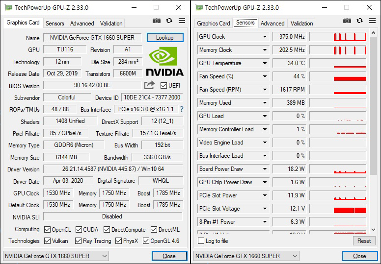 GPU-Z로 확인한 컬러풀 GTX 1660 SUPER