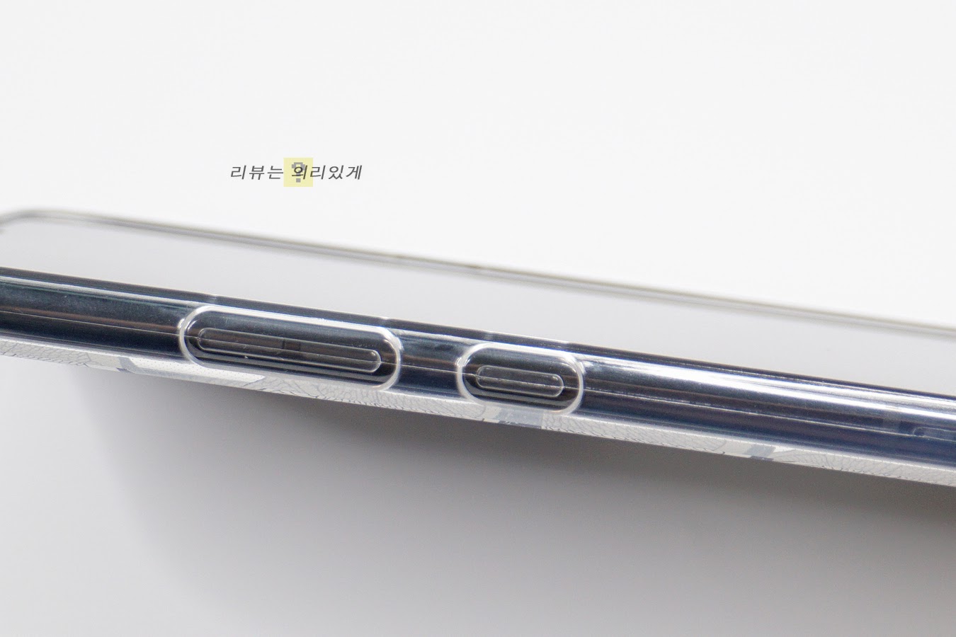 소재 특성상 두꺼우며 변색의 우려가 있으나 어느 정도 유연하기 때문에 탈부착이 편하고 무엇보다 두꺼운 두께 덕분에 스마트폰 보호도 어느 정도 된다는 장점이 있습니다.