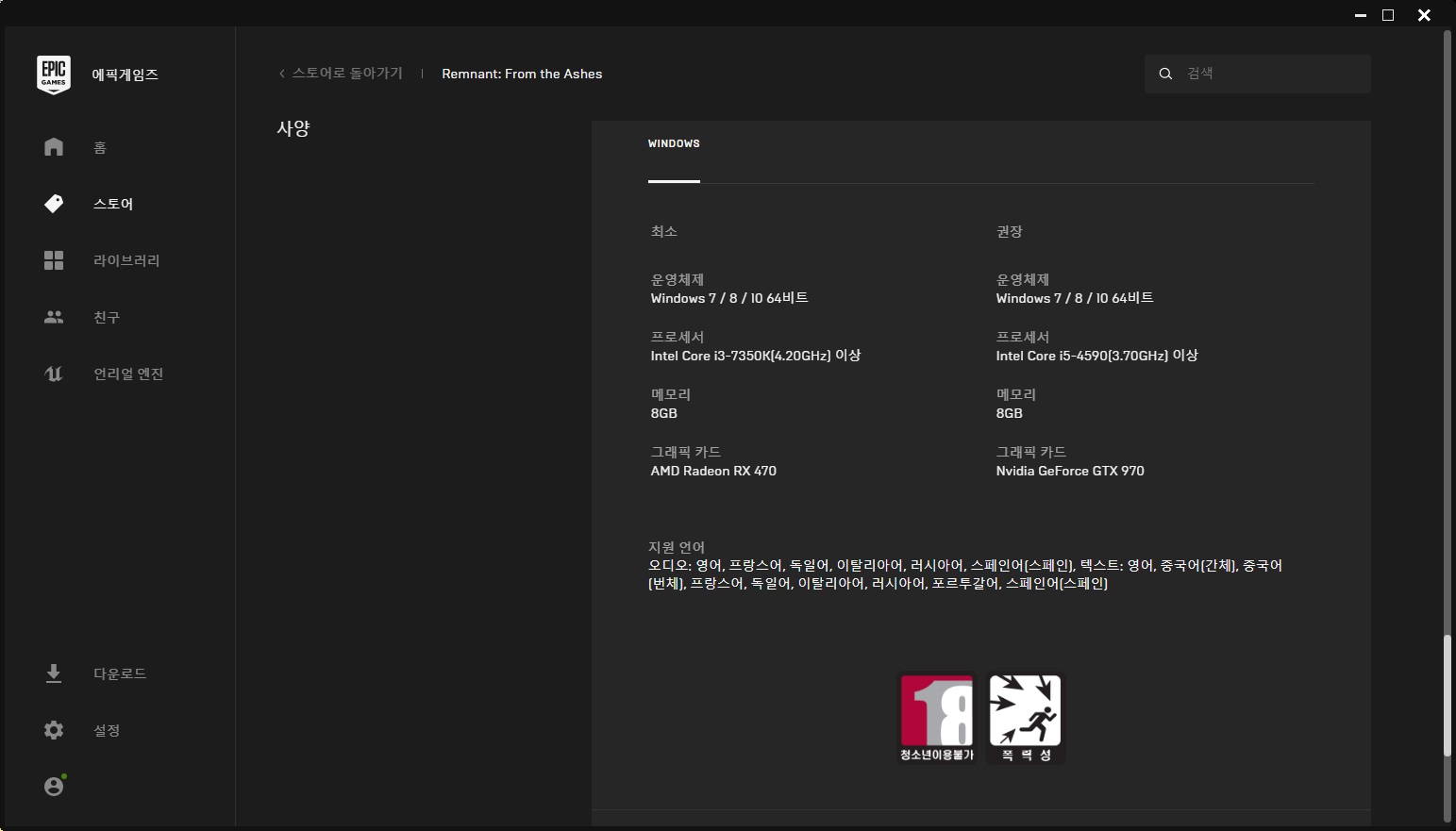 게임 사양은 권장사양 기준으로 인텔 코어 i5 4590 이상, 메모리 8GB 이상, 그래픽카드 엔비디아 지포스 GTX 970 이상을 권장하고 있으며 권장 사양 = 최소 끈김 없는 플레이라는 공식으로 생각해 볼 때 어느 정도 사양이 높은 게임이라 할 수 있습니다.