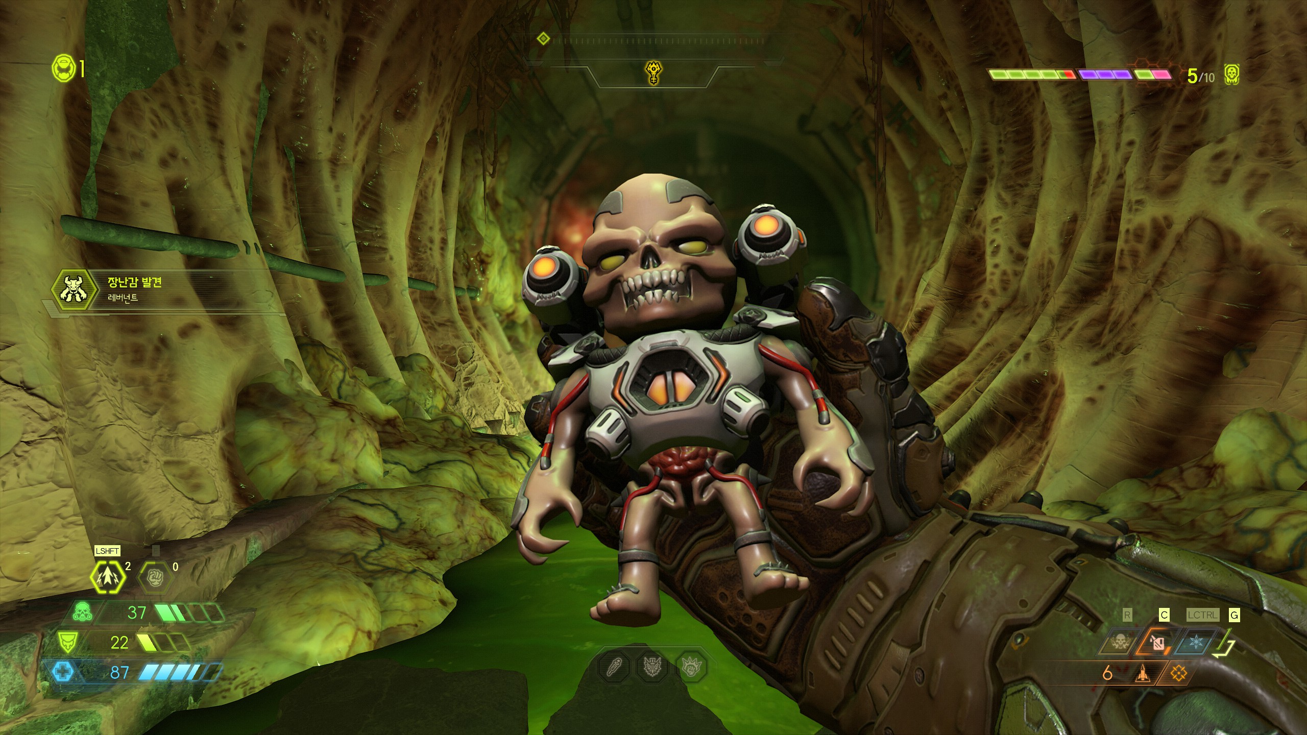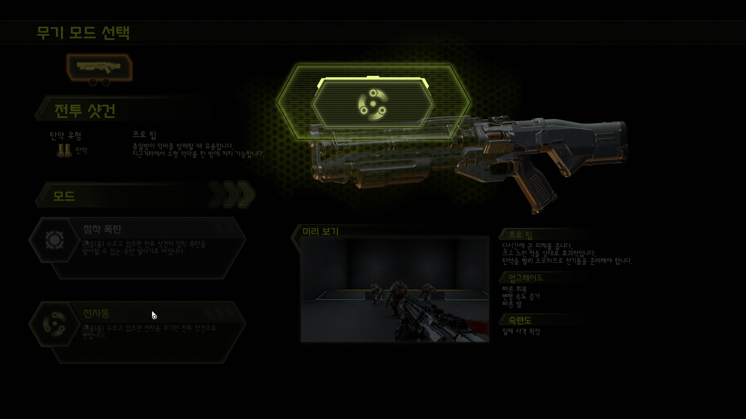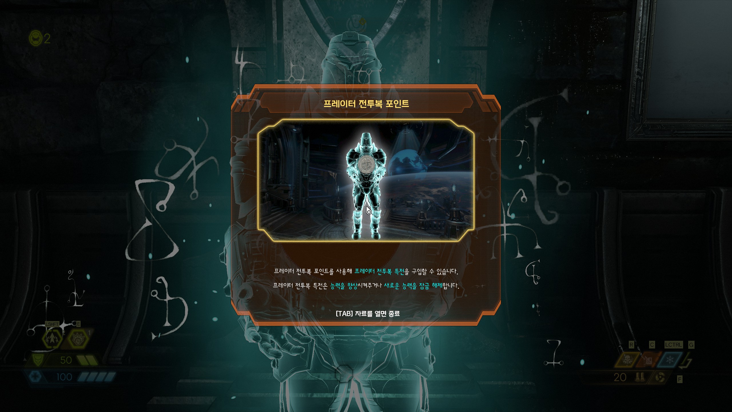 전작인 둠 리부트에서도 체력, 방어력, 총알 같은 요소들의 업그레이드를 할 수 있게 하였는데 이번 둠 이터널에서는 거기에 RPG 요소를 더 추가하였습니다. 이는 게임의 방향이 더 이상 총만 쏜다가 아니라 전투와 관련된 요소들을 플레이어가 본인이 원하는 스타일에 맞게 설정할 수 있다는 점에서 주목할 만하다 생각합니다.