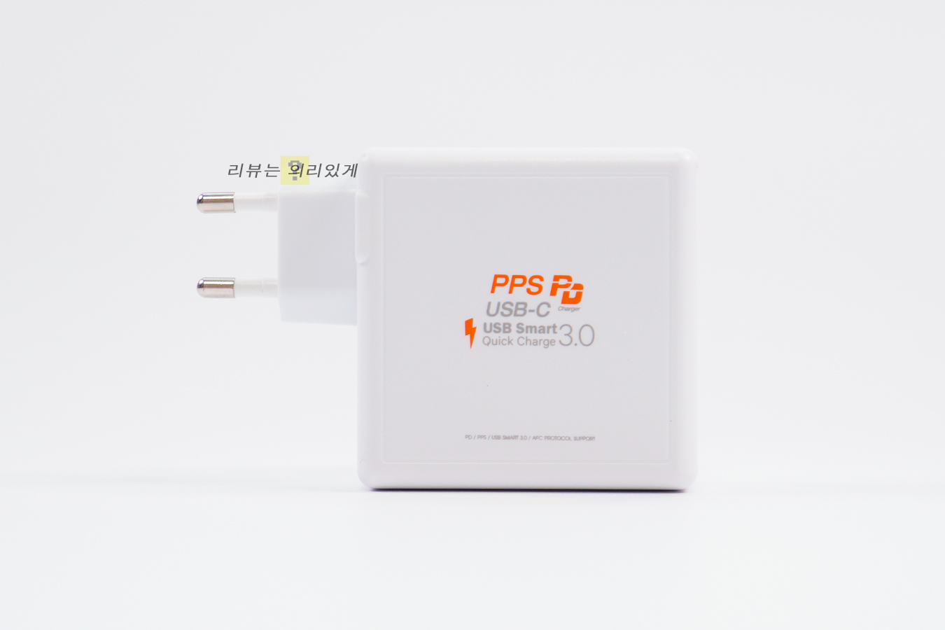 USB PD, PPS 고속 충전을 지원하며 듀얼 포트를 지원하는 제품이라서 인지 크기가 상당히 크며 묵직한 편입니다.