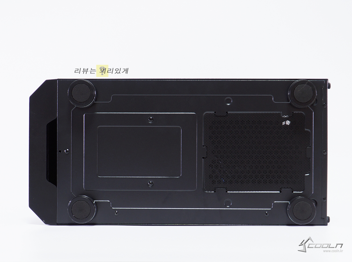 통풍구 크기를 최소화하였으며 상단을 포함한 양쪽 측면 모두 막혀 있는 모습. 이러한 모습 때문에 평소 내부가 보이는 구조로 되어있는 케이스에 익숙하다면 다소 답답한 느낌을 받을 수 있습니다.
