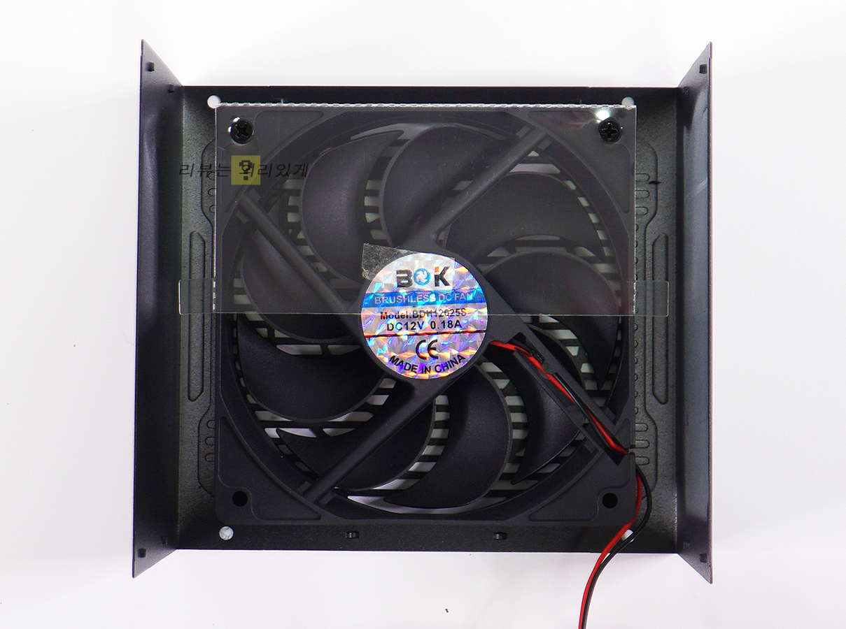 쿨링팬은 BDH12025S 120mm 팬이 사용되었으며 자세한 스펙은 알 수 없으나 DC 12V, 0.18A, 유압식(HDB) 베어링이 사용된 팬입니다.